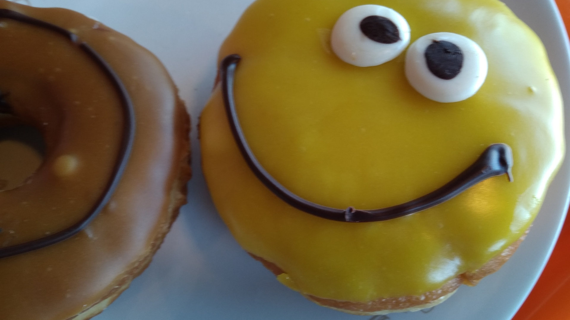 Выбирать пончики долго не пришлось: на меня с витрины уставился и нагло улыбался желтолицый Смайлик. «Вот тебя-то я и съем, негодяй, чтобы ты тут не лыбился!"-решила я и схватила наглеца щипцами. Смалик оказался лимонным.