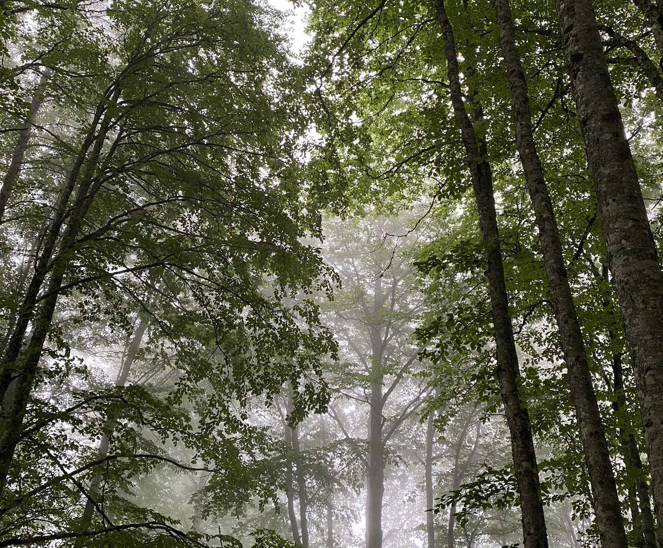 Приехав на высоту 1370 метров мы высадились и по указателю свернули в лес. Ошибиться физически невозможно вверх идет дорога и есть даже ворота. Ну и люди тоже есть Идут. Но не очень много.