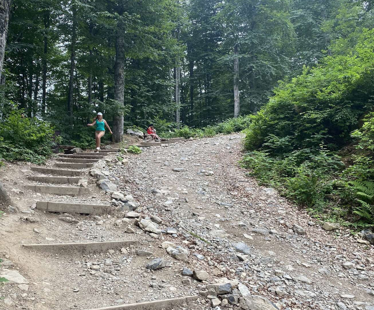 Первые несколько сотен метров пути ведут через очень живописный лес, но очень круто вверх. Сделаны подобия ступеней и лавочек. Совет как обычно — обувь. Ну и не торопиться по этому участку, давать себе время на отдохнуть. На самом деле в горку там от силы метров 500-600, дальше уже пологая часть до самого водопада. Так что не стоит падать ни духом ни телом.