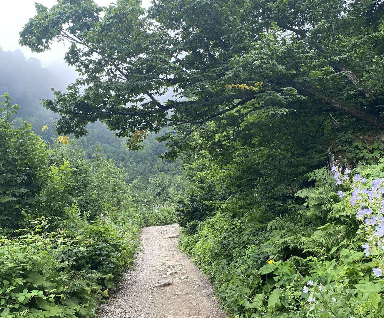 Поскольку мы были в июле, идея похода вверх по лесу 2 часа кряду нас не увлекла совсем. И мы выбрали очевидный третий вариант, тем более, что за день до того уже набегались по высоте 2000+ и иллюзий о собственной выносливости не питали.