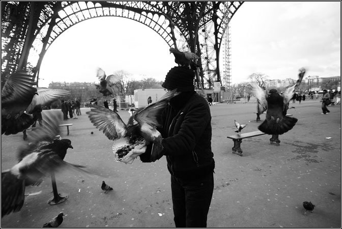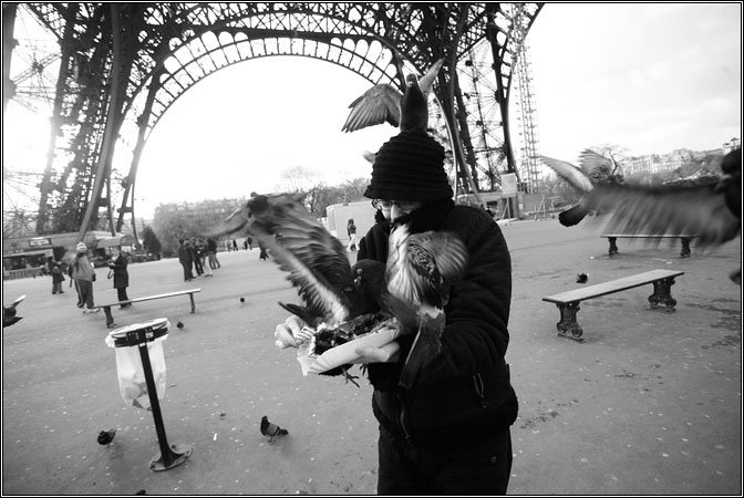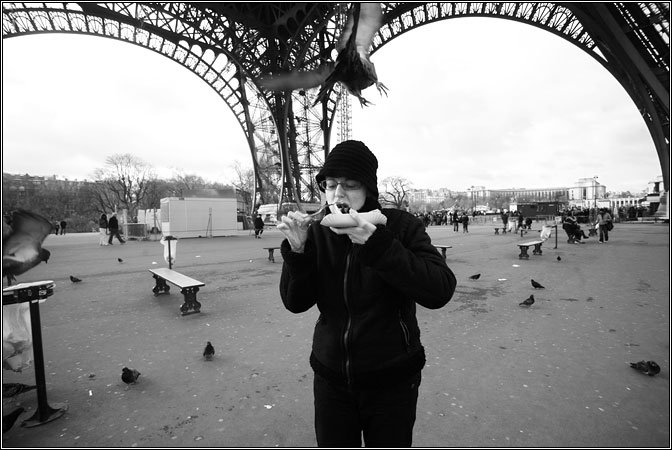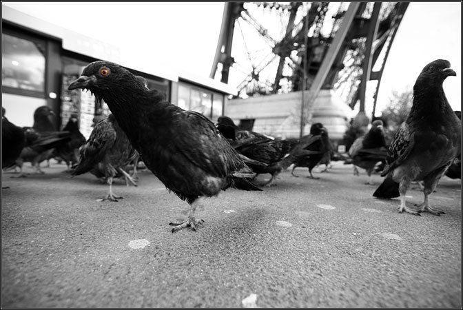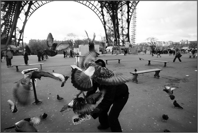 Мы подошли к Эйфелевой башне, когда мрачные серые тучи покрыли ее вершину. Злобные глаза продавцов сувениров прищурясь следили за нами. С глухим клекотом кружили птицы...