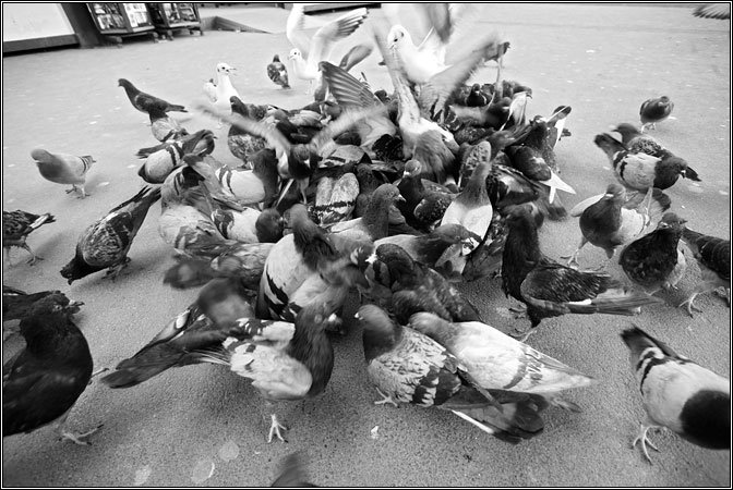 Он указал измазанным в алом джеме пальцем на голубя, усевшегося на прилавок. Голубь косил ярко-карим глазом и угрюмо молчал, совершенно по-человечески переминаясь с ноги на ногу.
