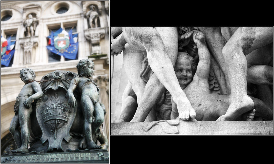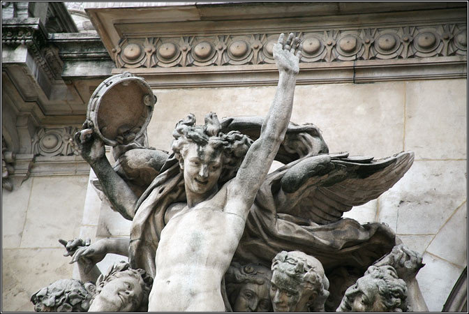 Правда на здании Гранд-опера младенец вообще в руках держит стесняюсь сказать что :) Говорят, когда эти статуи на фронтоне Оперы парижане увидели в первый раз — они жутко возмутились и подавали петиции, чтобы разврат такой был немедленно убран. Но, то ли скульптор был личным другом мэра, то ли девать их больше было особо некуда — статуи оставили. Так и стоят. Я там даже статую Админа нашел — человека с бубном :)