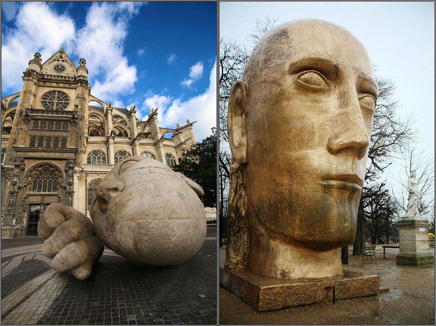 Много в Париже и просто так стоящих произведений искусства. Идешь-гуляешь, и вдруг просто так на земле каменная голова валяется. А в Люксембургском саду есть еще одна такая, метра в три высотой, но не каменная, а «желтого металла». Табличек рядом никаких нет, поэтому понять, к чему это все — невозможно :)