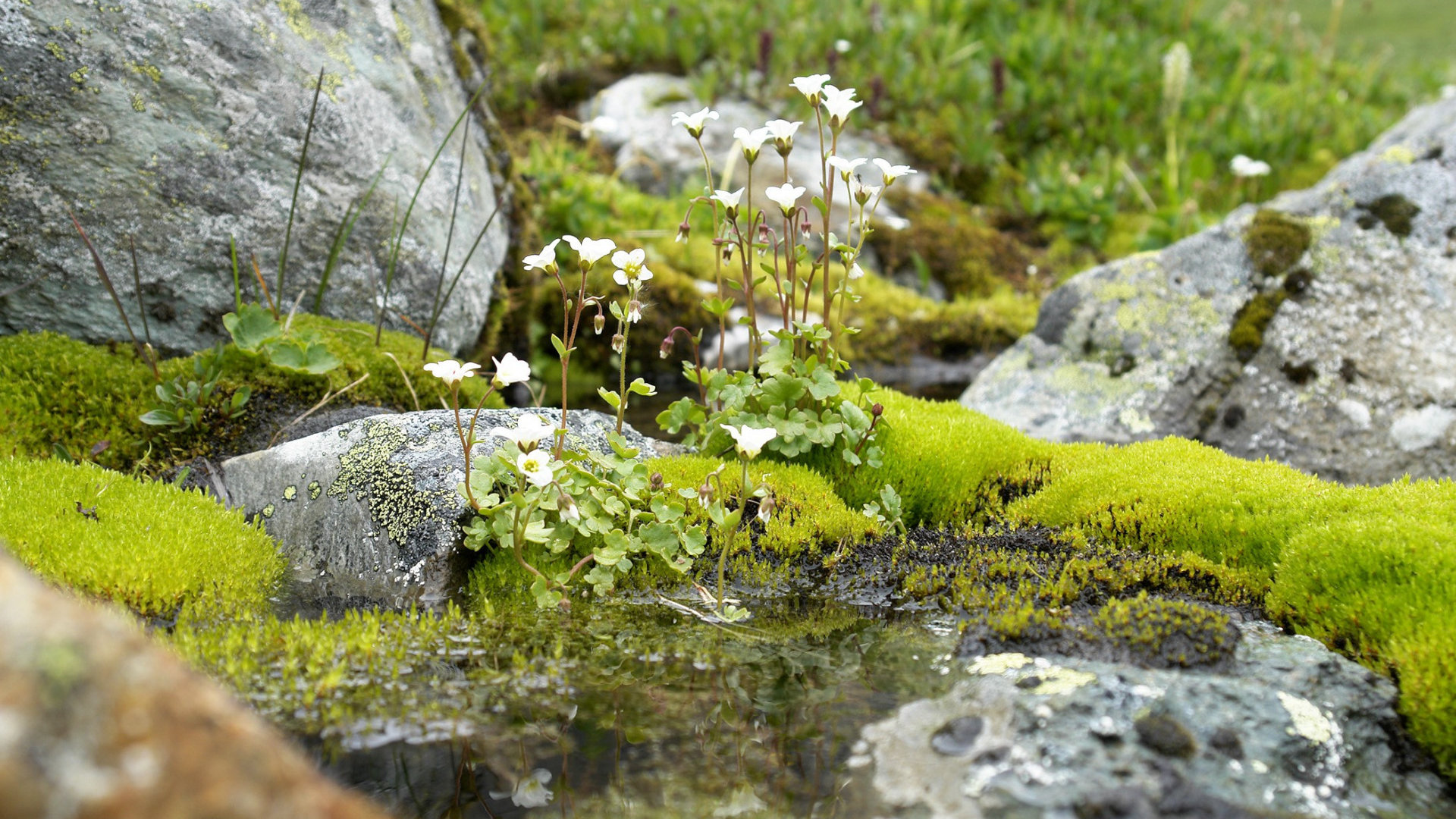 Пережидаем дождь под огромными кедрами. Однако щелканье фотоаппаратов не прекращается. Алёнкины озёра, водопады, ручьи, цветы и снежные горы — это поистине райское место.