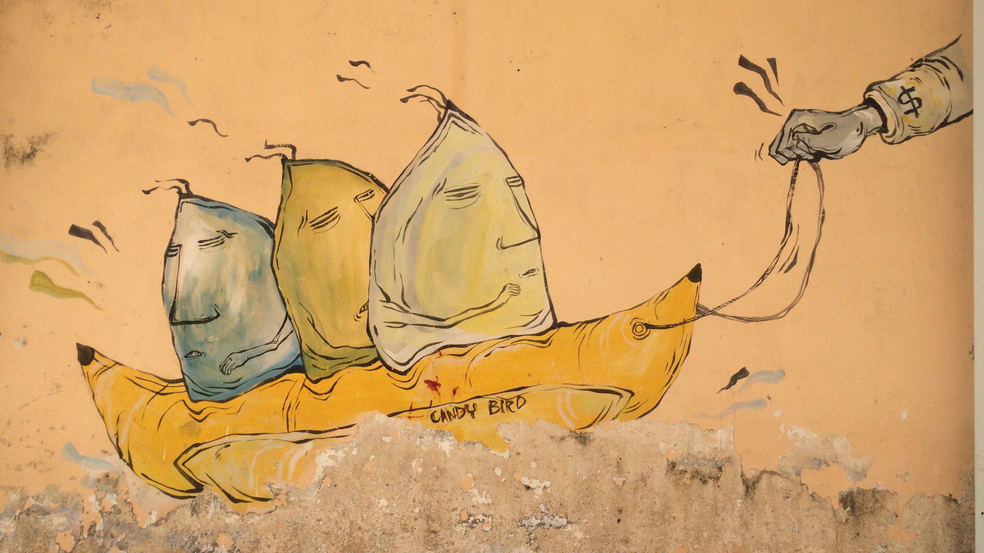 Весь город усыпан граффити, и туристов даже в сухой сезон полно, в основ это, конечно, китайцы.