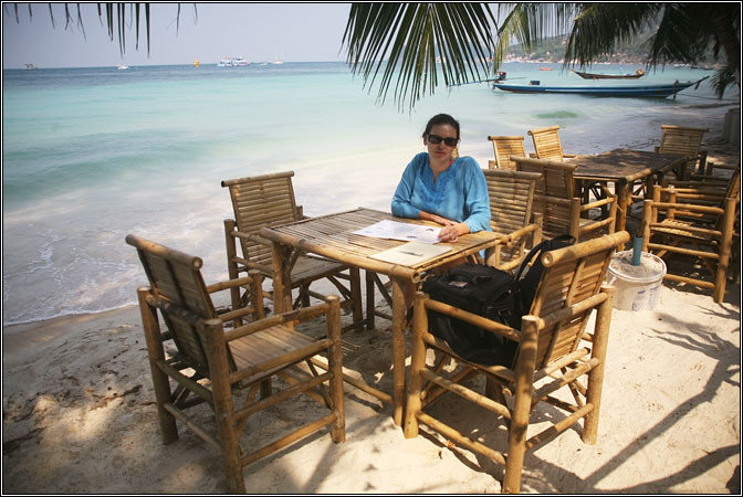 В очередной рекламной брошюрке, которые там лежат во всех туристических фирмах, мы посмотрели карту острова и выбрали себе место обитания — небольшой пляж Aow Leuk, лежащий в стороне от самого популярного пляжа Sairee, и выглядящий очень симпатично на фотографиях.