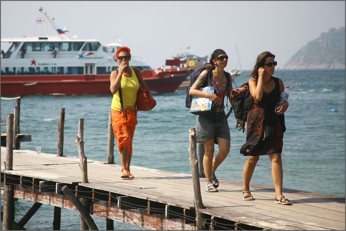 В общем и целом, так оно и есть. Из Бангкока мы автобусом добрались до Чумпона, города в самой тонкой части страны, где она непосредственно граничит с Бирмой — оттуда даже возят на дневные трипы в эту страну без визы. От Чумпона паромом до Ко-Тао всего три часа, а скоростным катамараном и того меньше. Забегая вперед, скажу, что мы успели покататься там на всех средствах передвижения, всех фирм-перевозчиков. Самые комфортные — красные спидботы Seatran, в них и в салоне нормальная температура, а не дубак, как в катамаранах Lomparayah, и кресла комфортные, и не укачивает, и идет с той же скоростью.
