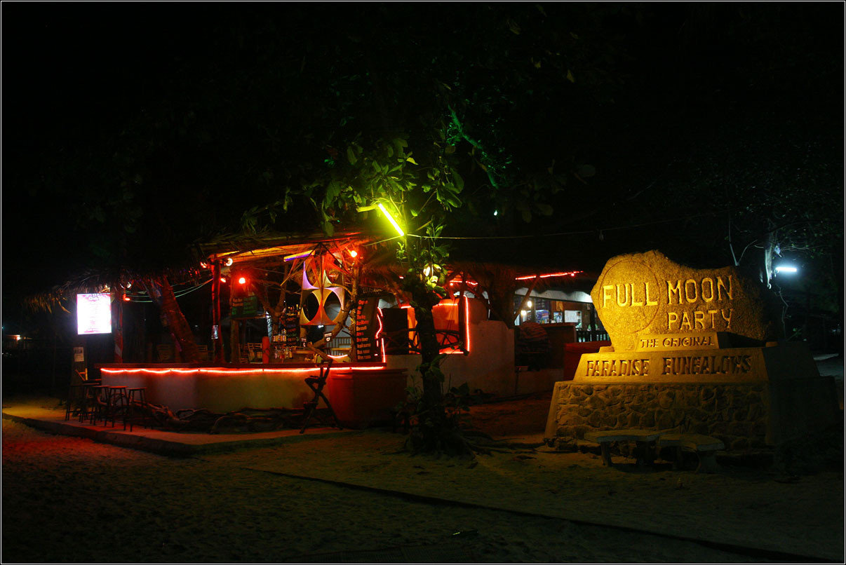 Через три дня мы переехали на Ко-Панган — этот остров уже довольно большой и славится своими full-moon-party. Первая из них прошла в начале 80-х и была просто чьим-то днем рождения. Однако всем крайне понравилось, вечеринка стала проводиться регулярно, обросла известностью и поклонниками и теперь стала местом ежемесячного сбора отвязной молодежи со всего мира. Мы, к сожалению, на нее не попали — фулл мун в феврале ожидался 22-го, а у нас 23-го уже был самолет в Москву.