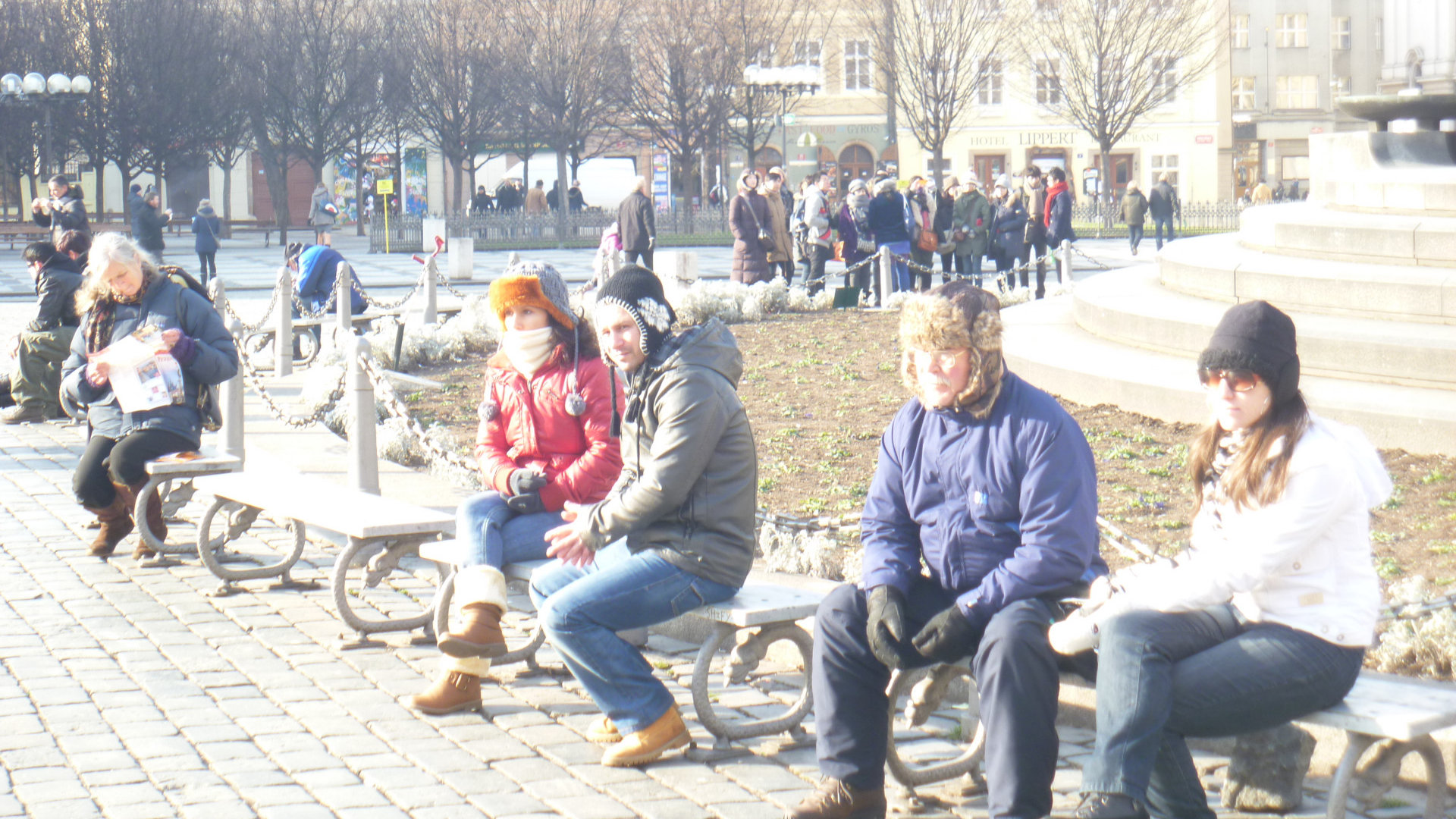 Что меня неприятно удивило, что пожилые, затаившие злобу на СССР и на всех русских, не сильно стремились помочь в проблеме типа «как пройти» и «где находиться». Они просто делали вид, что тебя нет. Охотно общалось среднее, более молодое поколение и, особенно, дети. Вот мне так попалось много русских детей в районе нашего отеля. Несмотря на холод, просто пронизывающий до костей, не только дети, весь народ очень легко одет. Понятно, что кроме нашей сестры в шубах тут никто не ходил, если только на вечерний променад. А еще на фоне зимы сильным контрастом была сочная зелень какого-то растения типа плюща или фикуса с толстенными листьями, ветвящегося по домам. Это очень впечатляло. Все-таки, средние широты, не юг, а тут зеленые лиственные растения вовсю растут.