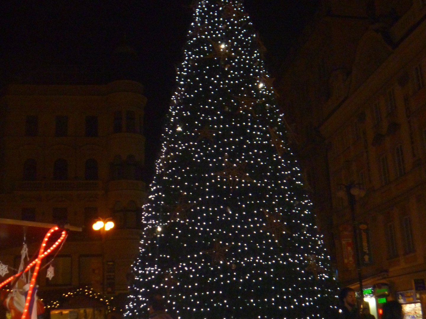 До окончания наших российских рождественских каникул центр Праги весь нарядный, в Германии, например, не так. Опять-таки, сказалось, излюбленное направление россиян, ну и чехи подстроились делать выручку. А почему бы и нет? Может что-то изменилось уже, но тогда мясо жарили на вертелах прямо в самом центре на ярмарочном базаре. Тут же сосиски, горячий глинтвейн, к которому мы все, страшно замерзшие, сразу кинулись на Староместской площади.