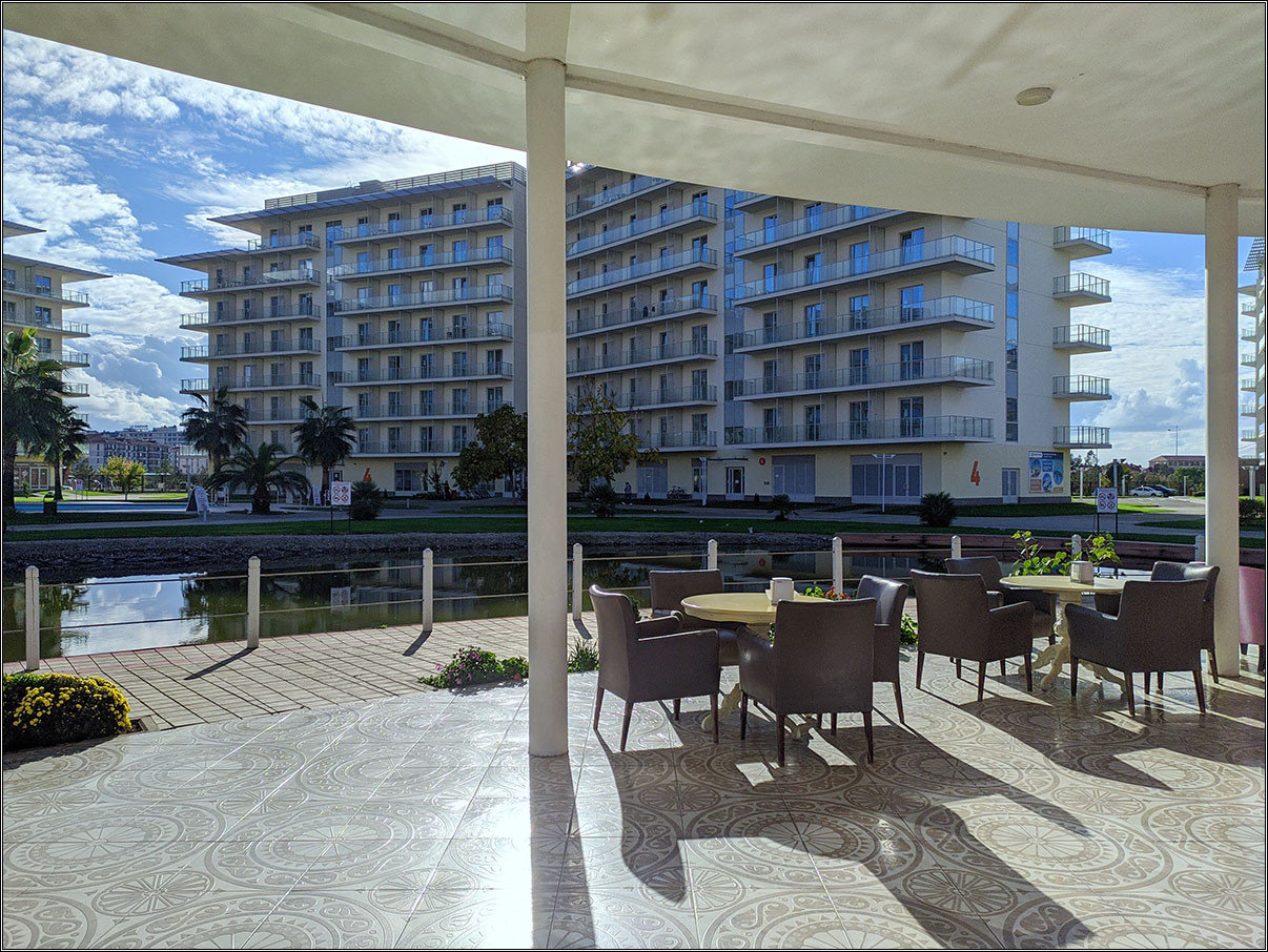 Расположение — отличное. До моря 10 минут пешком, до жд-станции — минут 15, оттуда в часе на электричке — Красная поляна с ее подъемниками. Через дорогу — олимпийский парк и трасса Формулы 1, так что все достопримечательности рядом.