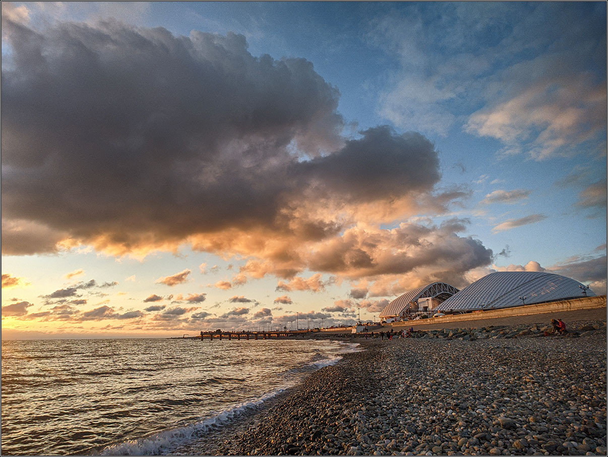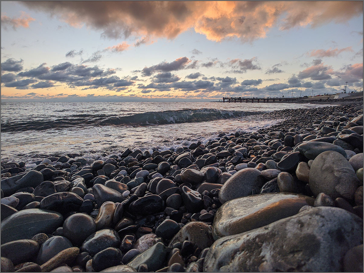 Сочинское море тоже показало мне себя во всех вариантах. Было солнечно и тихо, было пасмурно и ветрено, был даже красивый закат, на который я, правда, с трудом успел, много времени потратив на дорогу из Хосты.