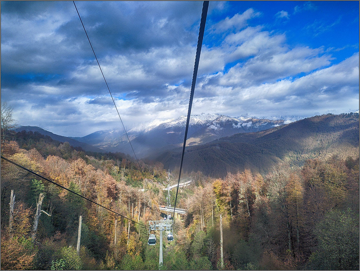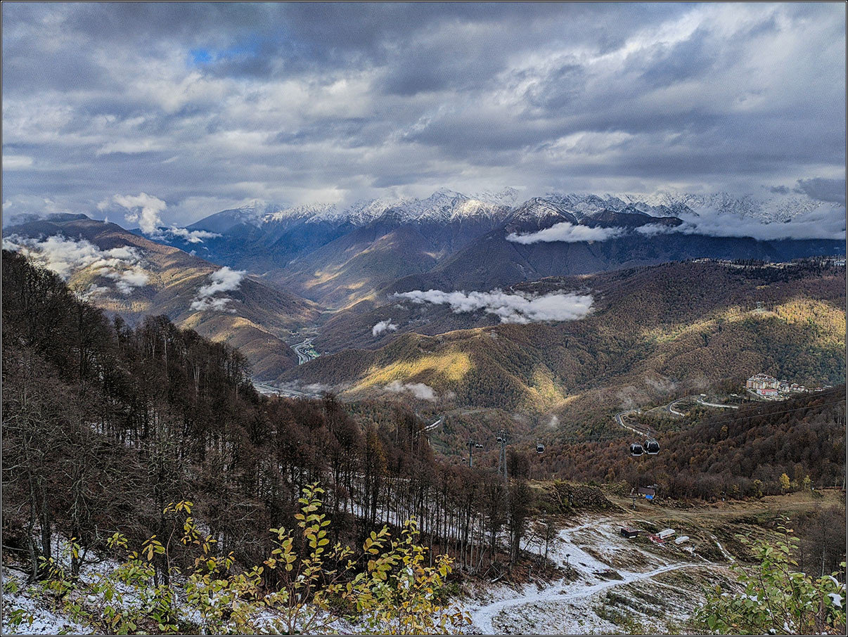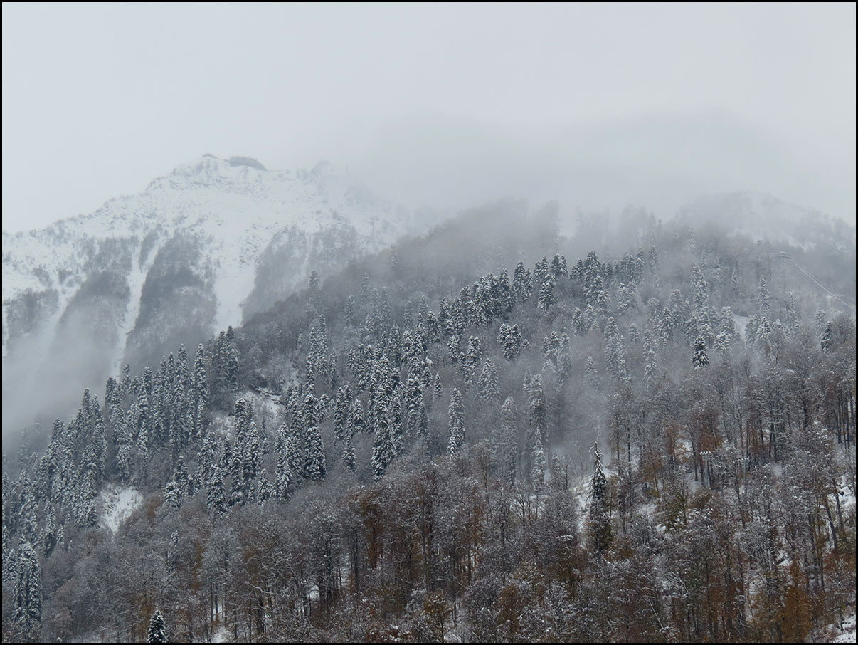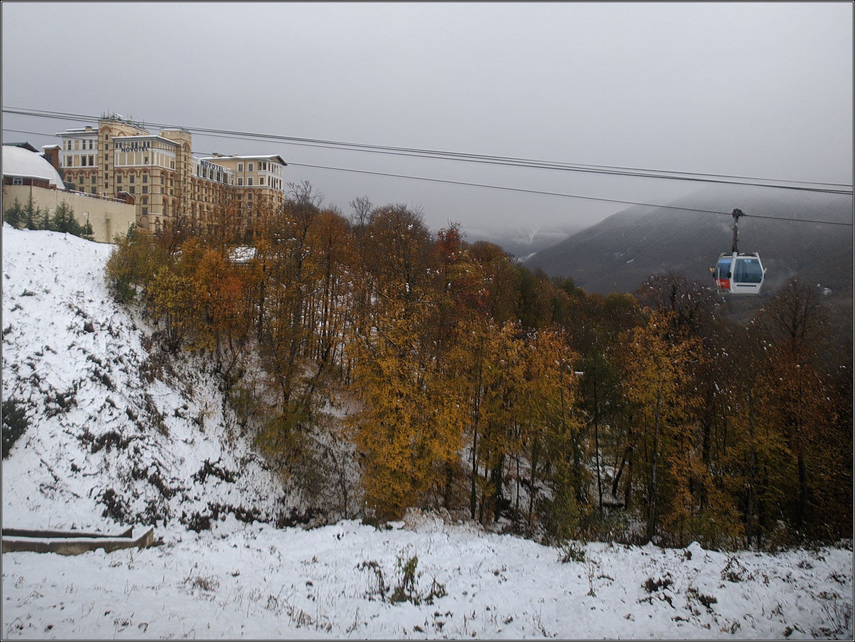 Всесезонный Сочи — это когда приезжаешь в горы с побережья, где была более-менее теплая осень, а там — зима. И не просто зима, а прямо вот Зима с большой буквы: метель метет, сугробы по колено, ни зги не видно, ратраки чистят тропинки, чтобы хоть как-то ходить можно было, у подъемников все окошки залеплены снегом, ты ходишь, проваливаясь в своих летних кроссовочках, и пытаешься еще что-нибудь сфоткать, поминутно протирая объектив от тающих снежинок.
