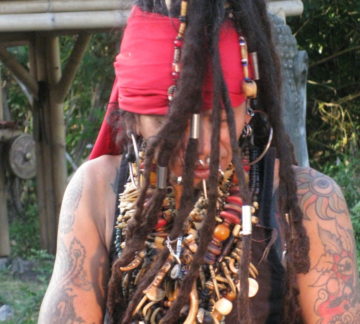 На территории имелся небольшой прудик с целебной грязью. В прудике хозяин дома проводил занятия йогой и устраивал всякие представления для друзей и туристов. Я подозревала, что без использования грязевого прудика тут не обойдётся. И не ошиблась.