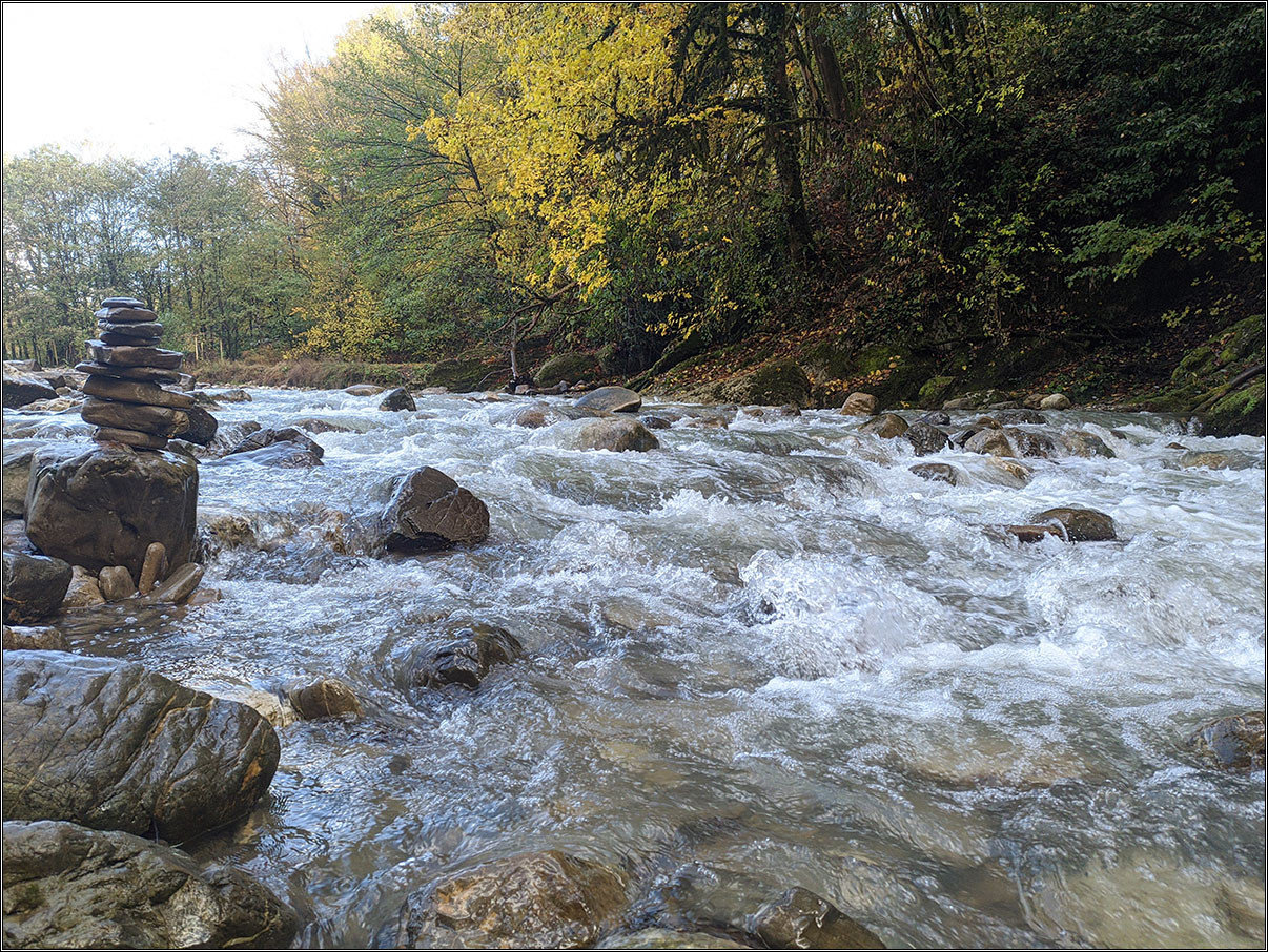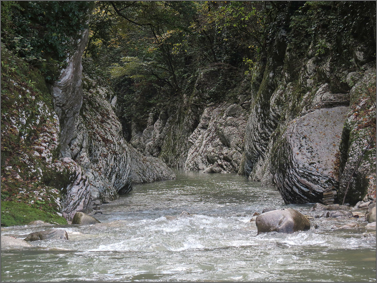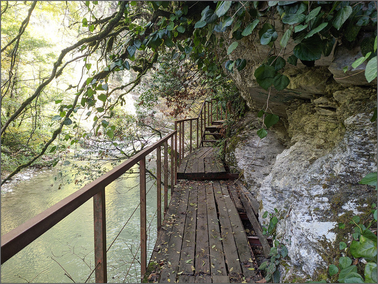 Но в целом, самым красивым был просто обратный путь — он проходит по берегу реки Хоста, и периодически выводит на живописные площадки, где можно передохнуть, полюбоваться и пофотографировать.