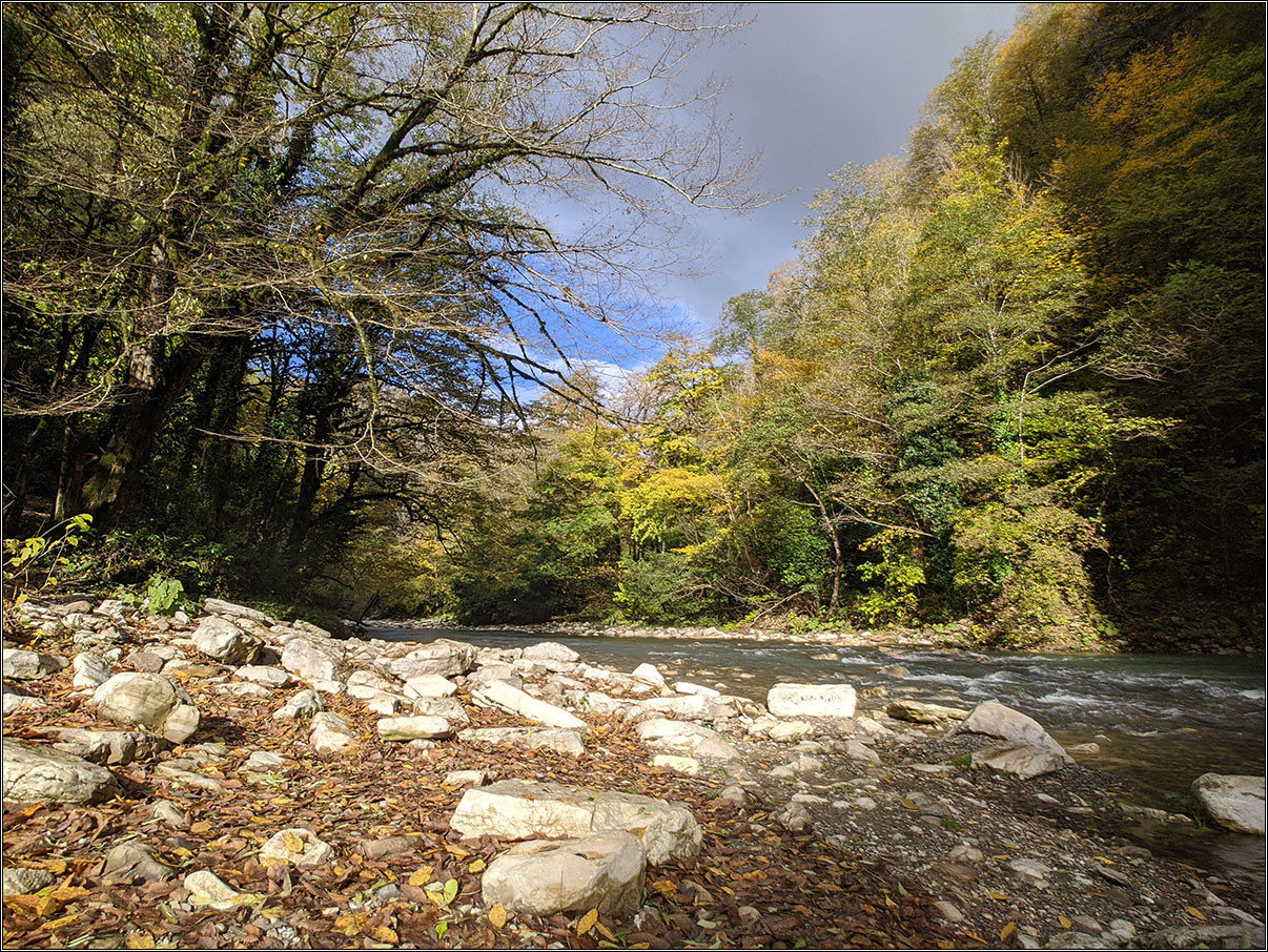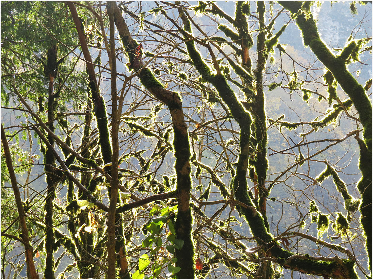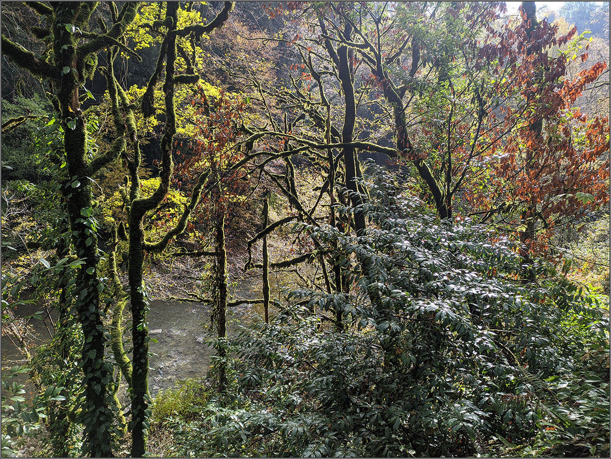Самшита в роще нет — он весь погиб еще в 2012 году, когда с саженцами для олимпиады туда завезли личинки какой-то вредной бабочки. Насчет тиса — не знаю, ботаник из меня не очень, но вообще растительность там красивая и фотогеничная. Стволы, обросшие мхом, все это в солнечных лучах, вокруг золотая осень, речка Хоста шумит на перекатах в белокаменных берегах — красота.