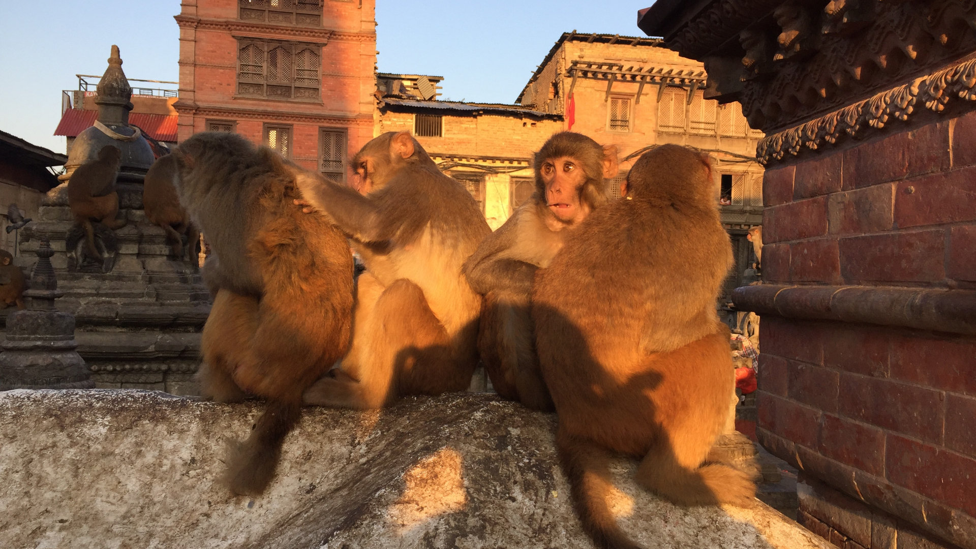 Не случайно Сваямбунатх еще называется Обезьяним Храмом. Крикливые приматы тут абсолютно везде. Хвостатые многочисленными семьями носятся по храмовой территории, прыгают по крышам построек, раскачивают кроны деревьев, увлеченно копаются в мусорных баках, дерутся друг с другом и шумно выясняют отношения. Словом, чувствуют себя весьма непринужденно и вольготно. Но при этом, проявляя чувство такта, к туристам не пристают и, совершенно разумно уважая чувства верующих, не мешают исполнять культовые церемонии. Одной из широко распространенных буддийских практик является ритуальный обход ступы по часовой стрелке.