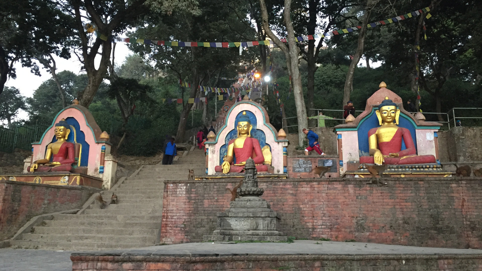 Покинув гостиницу ещё в темноте, бодро зашагал по просыпающимся улицам в сторону отчетливо виднеющегося на возвышении храма Сваямбунатх, крупного религиозного комплекса с действующими учебными заведениями тибетского буддизма.