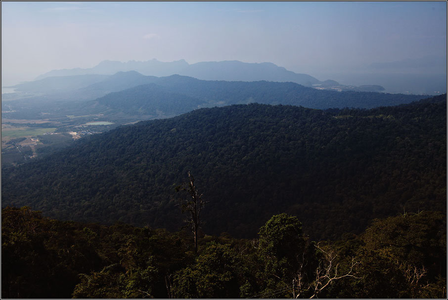 25.01.2013Заехали сегодня на самую высокую точку острова — гору Gunung Raya. 12 километров по серпантину на мотобайке — вроде как должно быть страшно, но там хорошая дорога, с максимально 15-градусными уклонами. После гор на Ко-Чанге — это вообще не горы Заехали, правда, не особо удачно: была середина дня и все красоты были подернуты легкой дымкой. Надо на закате в такие места заезжать.