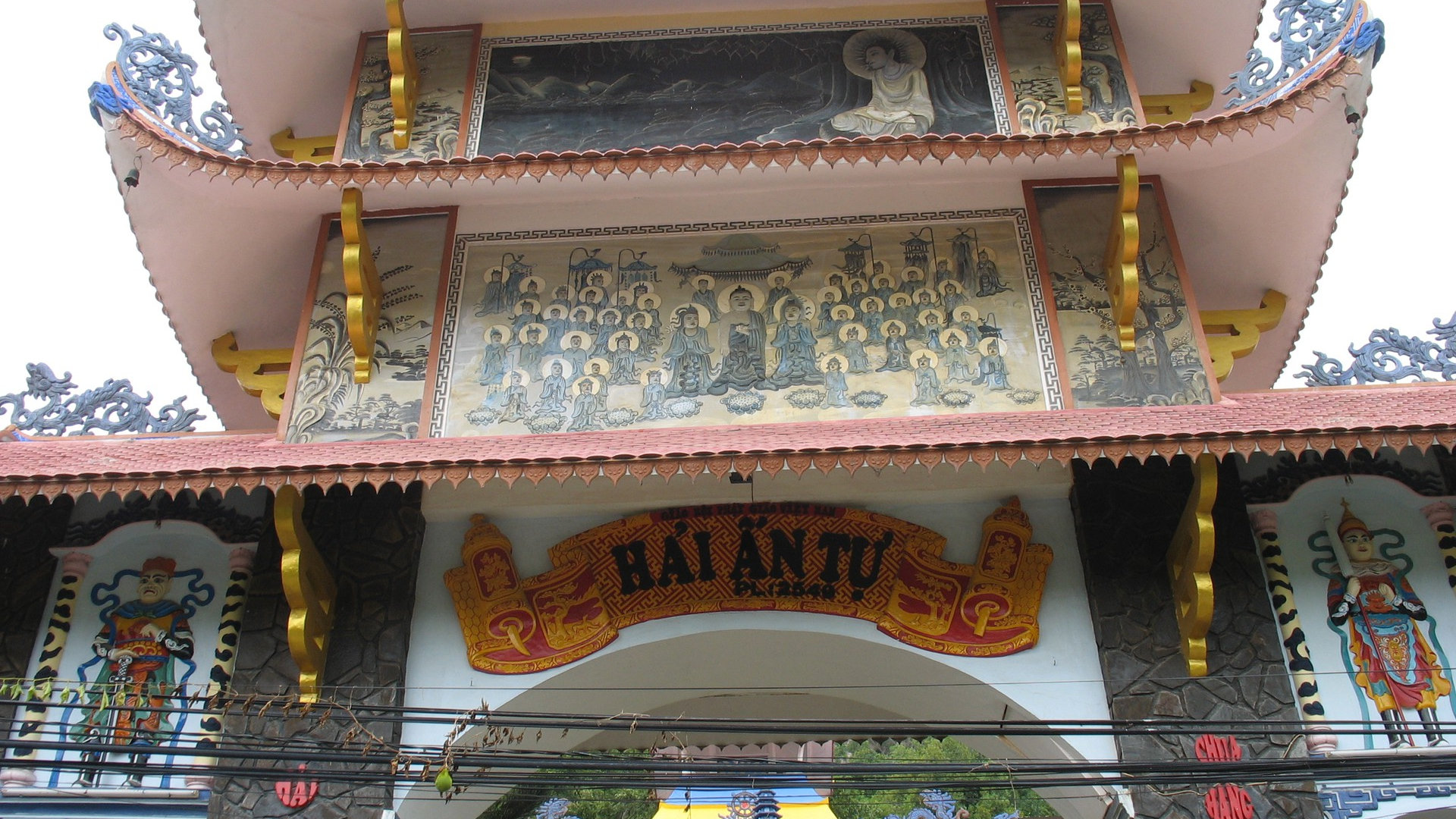 Там к нам с разговором пристал вьетнамец. Говорил хорошо на русском, говорил, что знает 5 языков, прошел с нами наверх. Рассказывал, что учился в буддисткой школе при этом храме, так как родителей плохие америкосы убили. А потом хотел на благо школы продать открытки по бешенной цене, типа для нужд школы. Эх, развод, все понятно, но мы так долго с ним болтали – пришлось купить (цену раз в 5 скинули). Будьте бдительны!!!