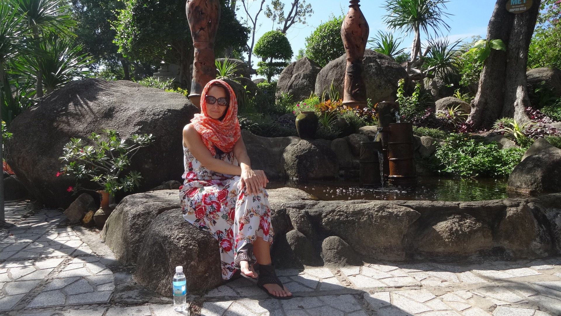 Кожа после грязи (она больше на глину косметическую похожа) стала бархатная и даже почти все пигментные пятна ушли. У мужа на руке была красная кожа от солнца – все прошло. Покушать там есть кафе. Есть речка с рыбами. Все красиво. Полотенца можно там взять. На одного комплекс стоит 120000 донгов.В Нячанге есть еще другие термы, поновее АЙС-резорт вроде. Они подальше и подороже. Мы не успели посетить.Во Вьетнаме очень много фруктов. Делают очень вкусные фреши по смешной цене– 15000 большой стакан (это 35рублей примерно). Но лучше говорить «No ICE». Так как из какой воды сделают лед неизвестно и можно какую нить бактерию схватить местную. Следующая ночь была ужасной. У меня еще поднялась температура 39. Сама виновата – съела блинчик с мясной начинкой, а мясо почти не ем, тем более там скорей всего свинятина была. Так вот, из за дождя у нас были мокрые вещи (пляжные, полотенца, одежда , обувь) и в комнате без окна и вентиляции стало так душно, что уже серьезно были мысли идти ночевать на крышу. Следующий день был опять дождь. По улицам во Вьетнамском квартале текли реки с мусором, отходами и объедками. В общем, пережили еще одну бессонную ночь, так как уснуть при влажности почти 100% невозможно. Все становится липкое. Дышать практически нечем. Одежды и обуви сухой почти не осталось. За 3 дня ничего не сохло. Вешали на дверки шкафа и чемоданы. С собой имели моток веревки, но ее просто некуда было прикрепить. На следующий день я в контакте описала ситуацию нашему тур агенту, а она связалась с туроператором. И произошло ЧУДО!!! Мы возращаемся с экскурсии, а нам на рецепшене говорят пойти посмотреть номер. Там окно в комнате и в туалете. Свежо. Стоит ваза с розочками и мандарины – как нам дали понять извинения за неудобства. В обще мы мигом переехали.