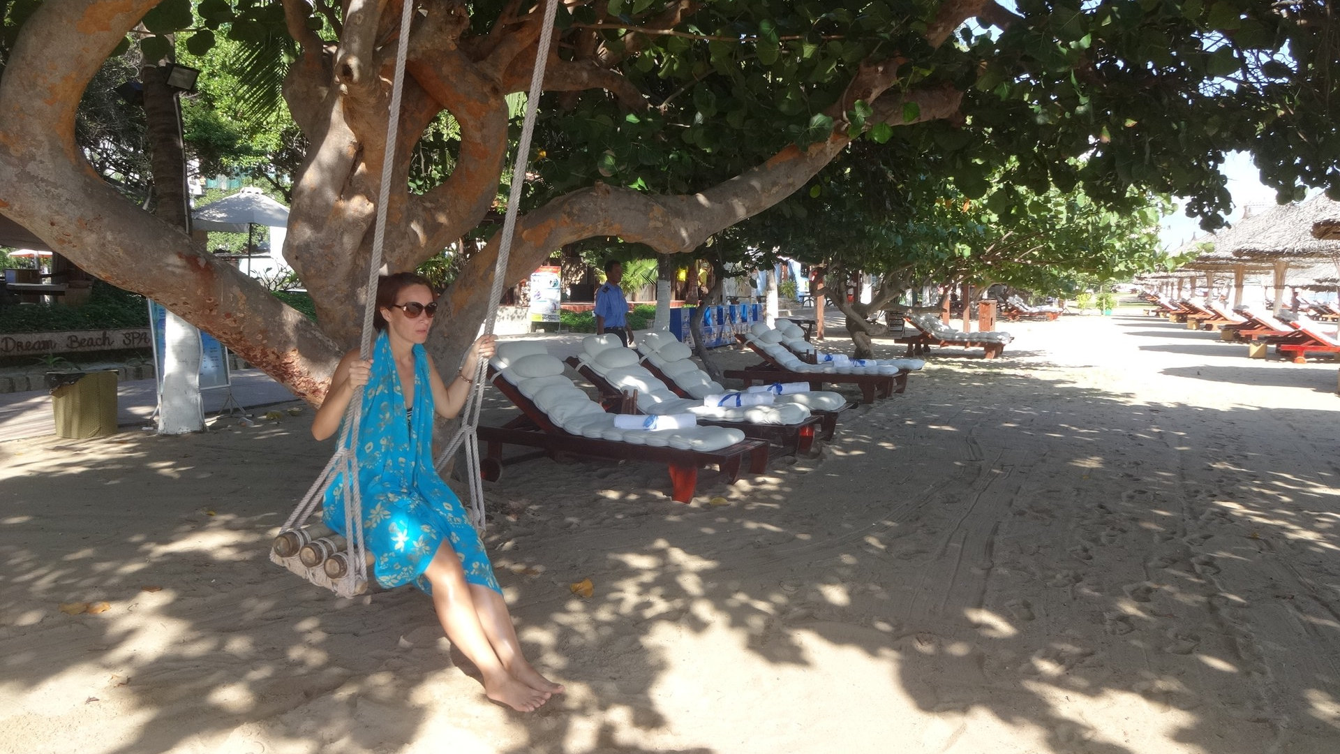 Лежак стоит на день 60тыс (примерно 150руб.) К нему дают купон на скидку в кафе и бесплатный лимонад. Мы располагались не под зонтиками, а под деревьями вдоль дорожки – там тень была весь день.