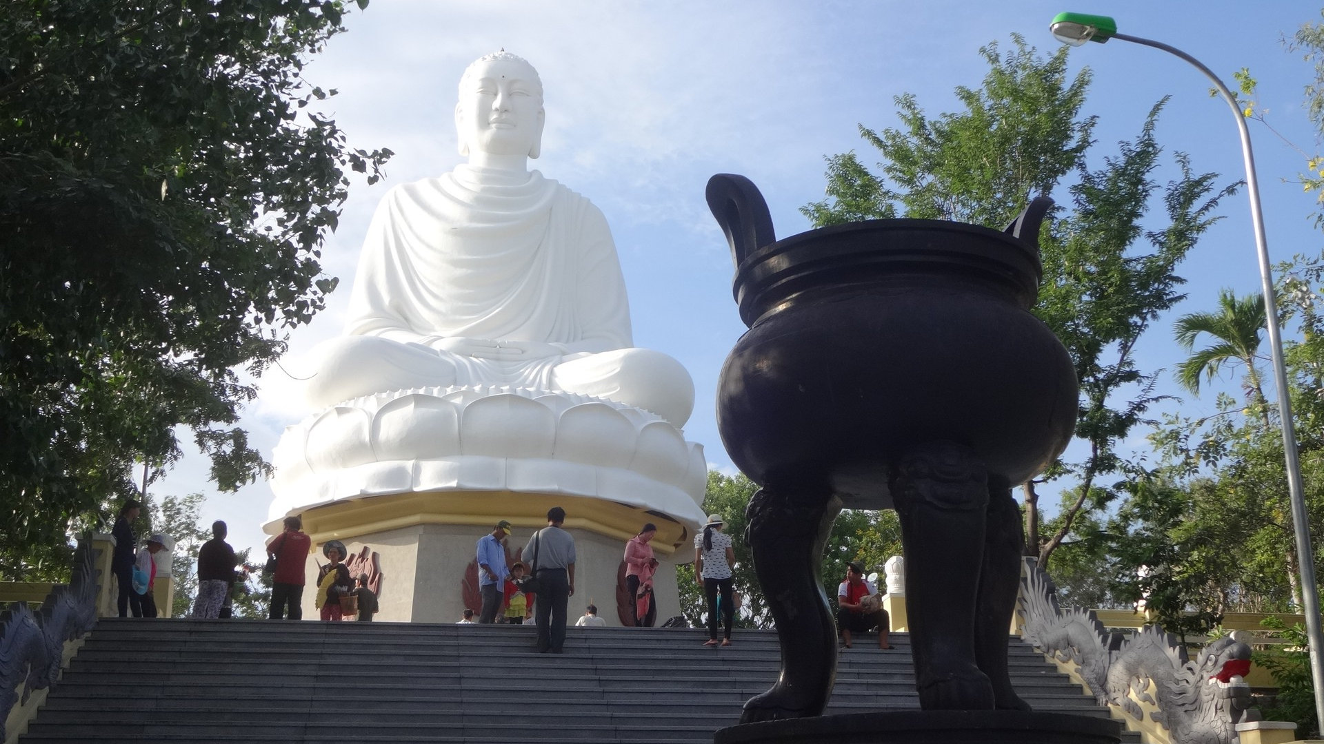 Соседи по отелю с Дальнего востока, которые были и в Китае, и в Тайланде и на ГОА, все говорят, что во Вьетнаме чище всего. Теперь слово ТАЙ меня уже не манит. Второй день мы провели на пляже (были тучи, но защитным кремом надо мазаться обязательно). Наши Самарские попутчики за пару часов на пляже (без солнца) обгорели и несколько дней болели с температурой). Потом совершили пешую прогулку по городу.Дошли до Будды.