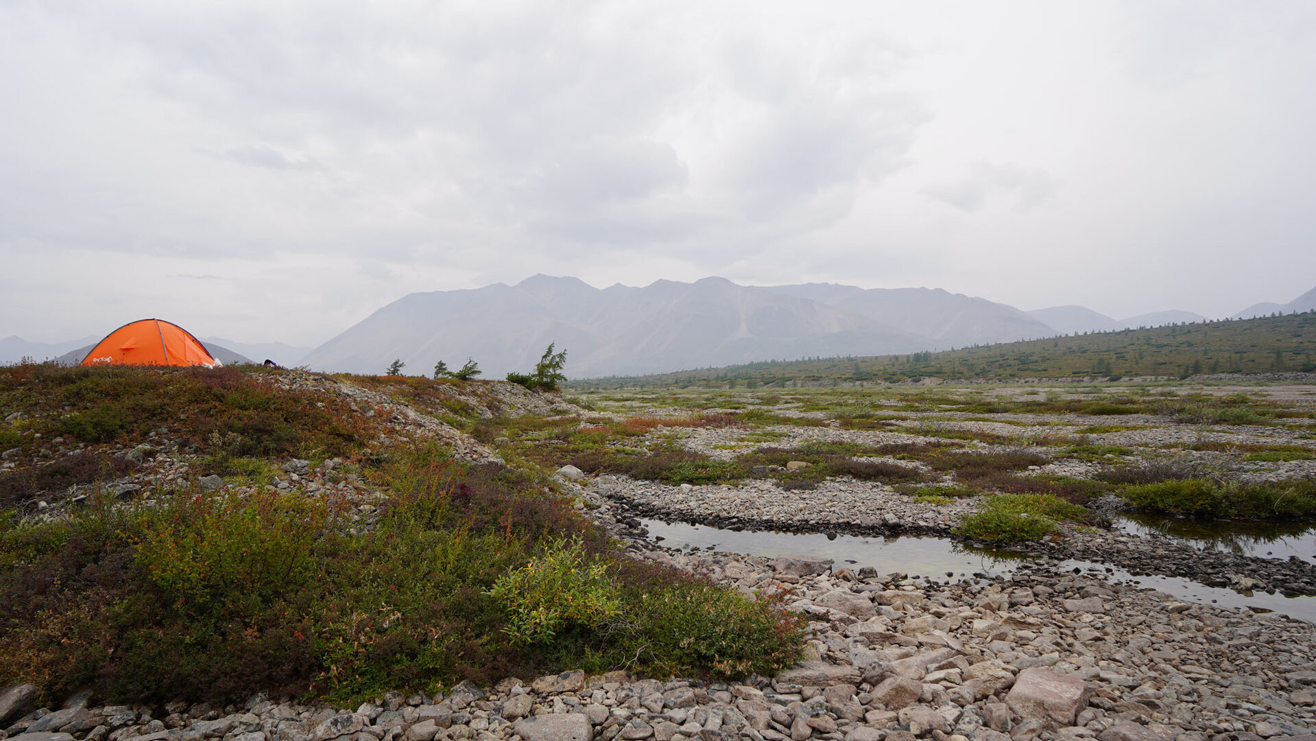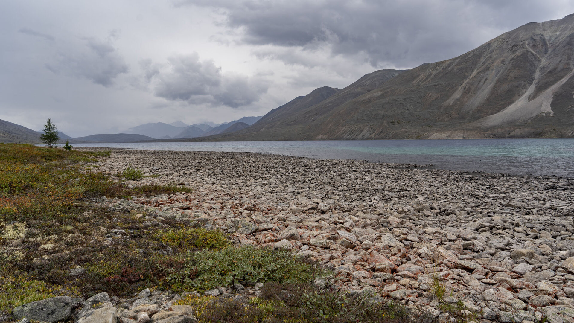 Водораздельное встретило нас сурово, сильный ветер, морось, холодно. Но озеро прекрасно). На другом берегу увидели пасущихся оленей. 4 километра по прямой вдоль озера вымотали нас. Сначала все прекрасно, тропинка и все чудненько. Потом начались прижимы. Первый облезли сверху — тоже ничего хорошего, курумник, ноги наломаешь. Решили идти берегом. Все бы ничего, но последний прижим берегом — был нашей большой ошибкой. Ковырялись не дай бог. Надо было идти сверху! Обошли озеро и встали на перешейке между Водораздельным и Верхним Водораздельным. Почти всю ночь шел дождь.