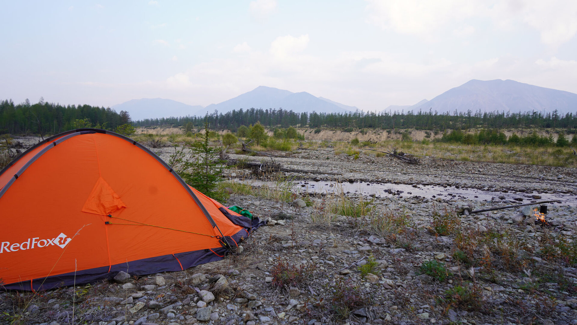 В какой-то момент сильно прижались к горе, что уперлись в большую возвышенность, пришлось обходить, делать крюк. Теперь по карте спокойно ориентируемся и понимаем где мы. Ручей бродим, но почему-то забываем набрать воды. После еще одного маршброска я понимаю, что не хватает воды, во рту все пересохло. Меняем курс на реку и примерно с километр идем к реке. Вечер уже, пора и ставить лагерь. Идем к реке долго, а ее все нет и нет. Пока отдыхали, Эдик вдруг сорвался и пошел на разведку без рюкзака. Пришел, сказал, что еще немного осталось, но там бурелом — навал деревьев. Проходить бурелом то еще удовольствие, но справились и встали ночевать. Место мне очень понравилось. Сегодня день прошел уже гораздо лучше. Аппетит возрос, все было хорошо.