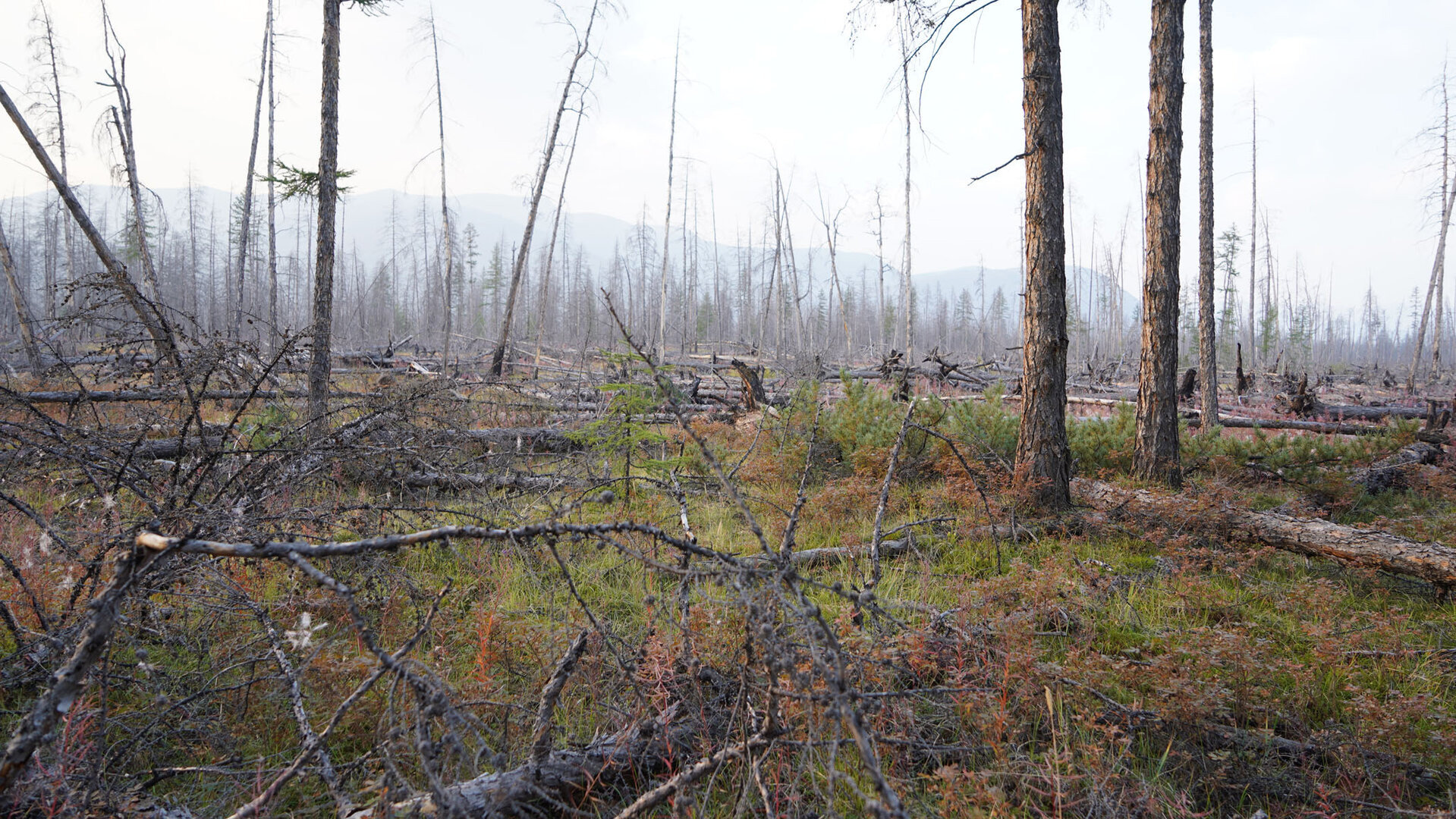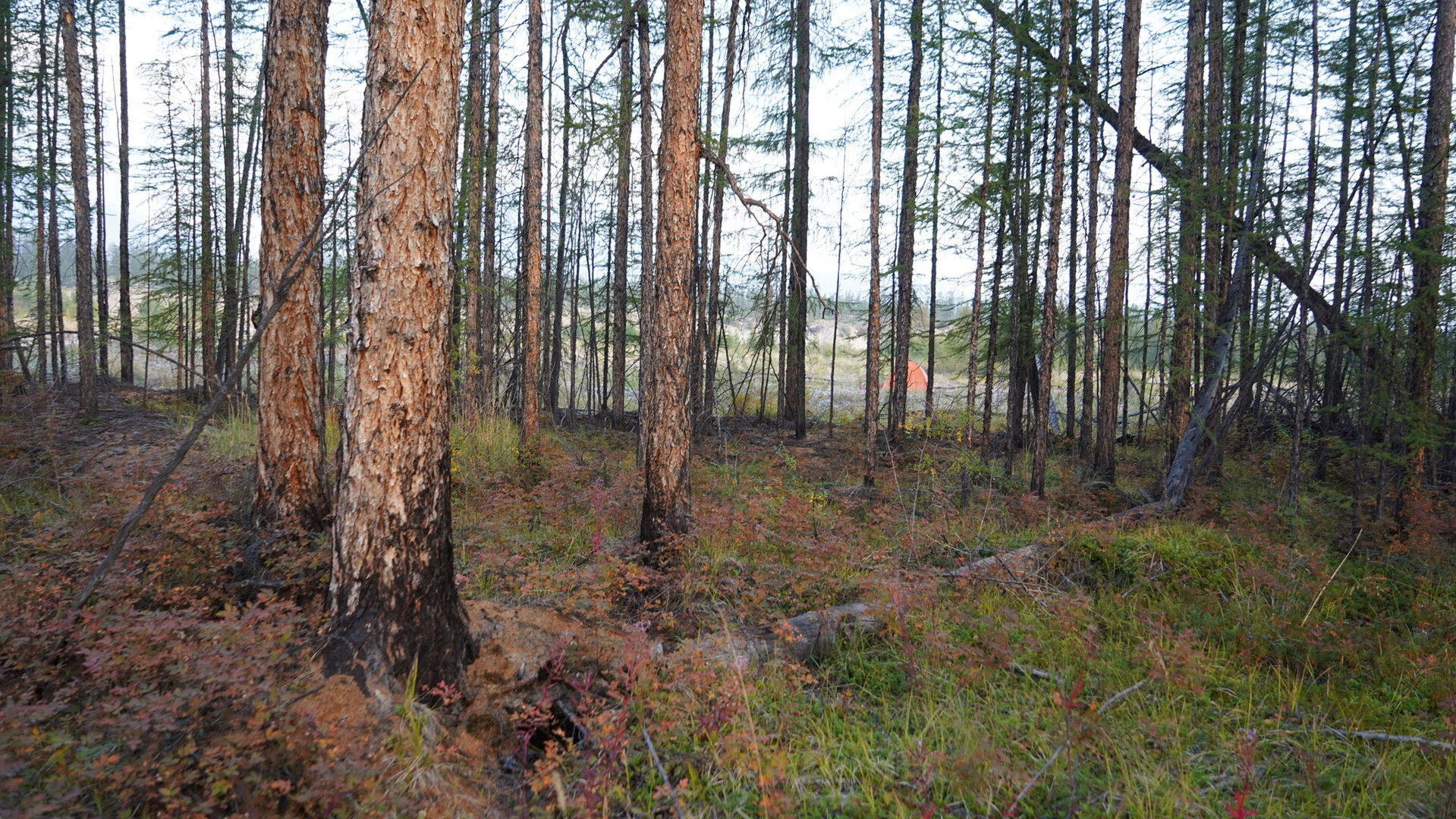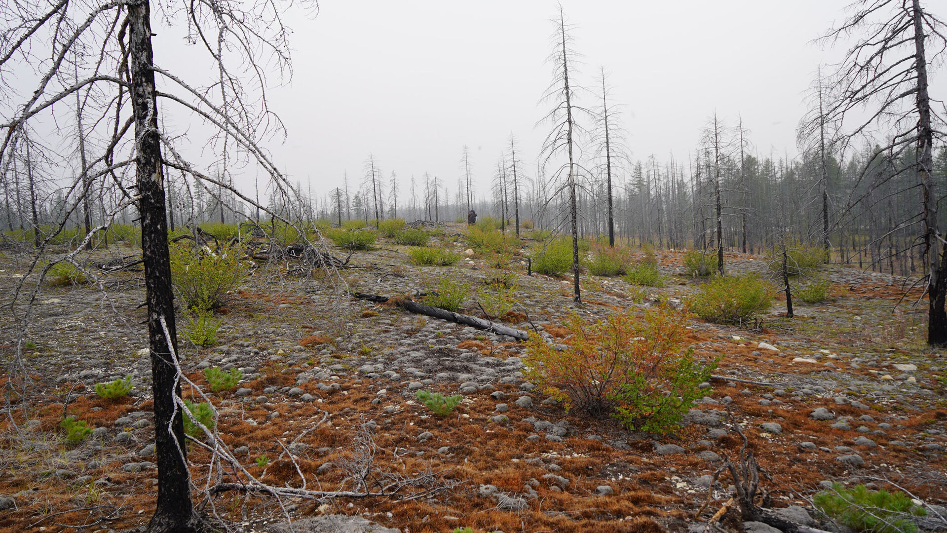 На этот раз на пути у нас горельник и большие медведи. Дым рассеивается, мошка уходит — мы выходим из леса к водоразделу.