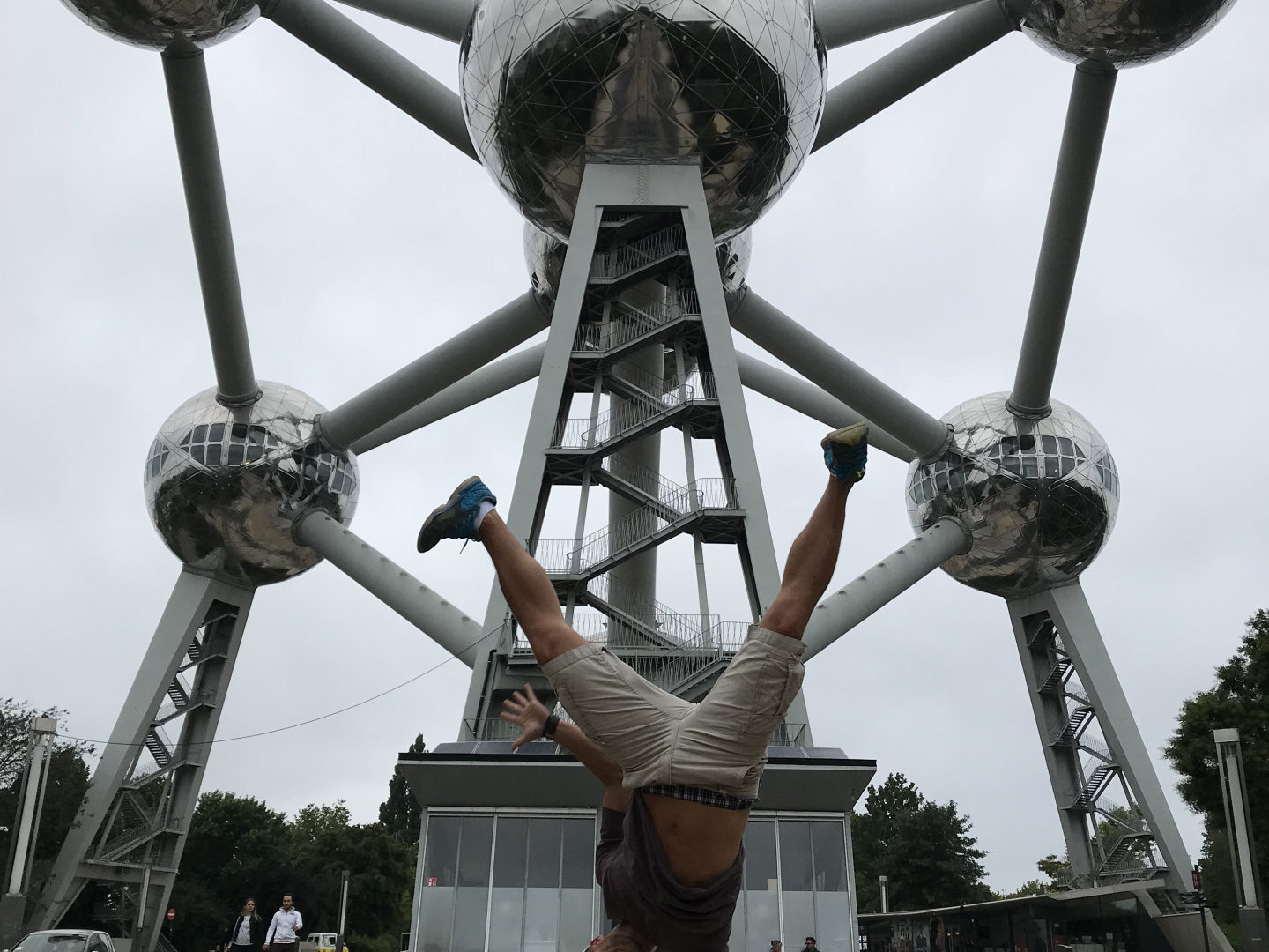 2. Атониум — футуристический символ Брюсселя, подразумевающий мирное использование атомной энергии. Шли мы до него около пяти километров, и после питающего мальчика ожидали так же увидеть маленький атониум, не превышающий размер двухэтажного здания, но в этом мы ошиблись! Зайдя в огромный парк, мы увидели возвышающийся над всеми деревьями в 2, а то и в 3 раза, огромнейший Атом! Внутри расположен музей наук, на лифте можно подняться на самую верхнюю точку и увидеть столицу с высоты птичьего полёта, а ночью каждый атом подсвечивается яркими фонарями! Зрелище невероятное и впечатляющее!