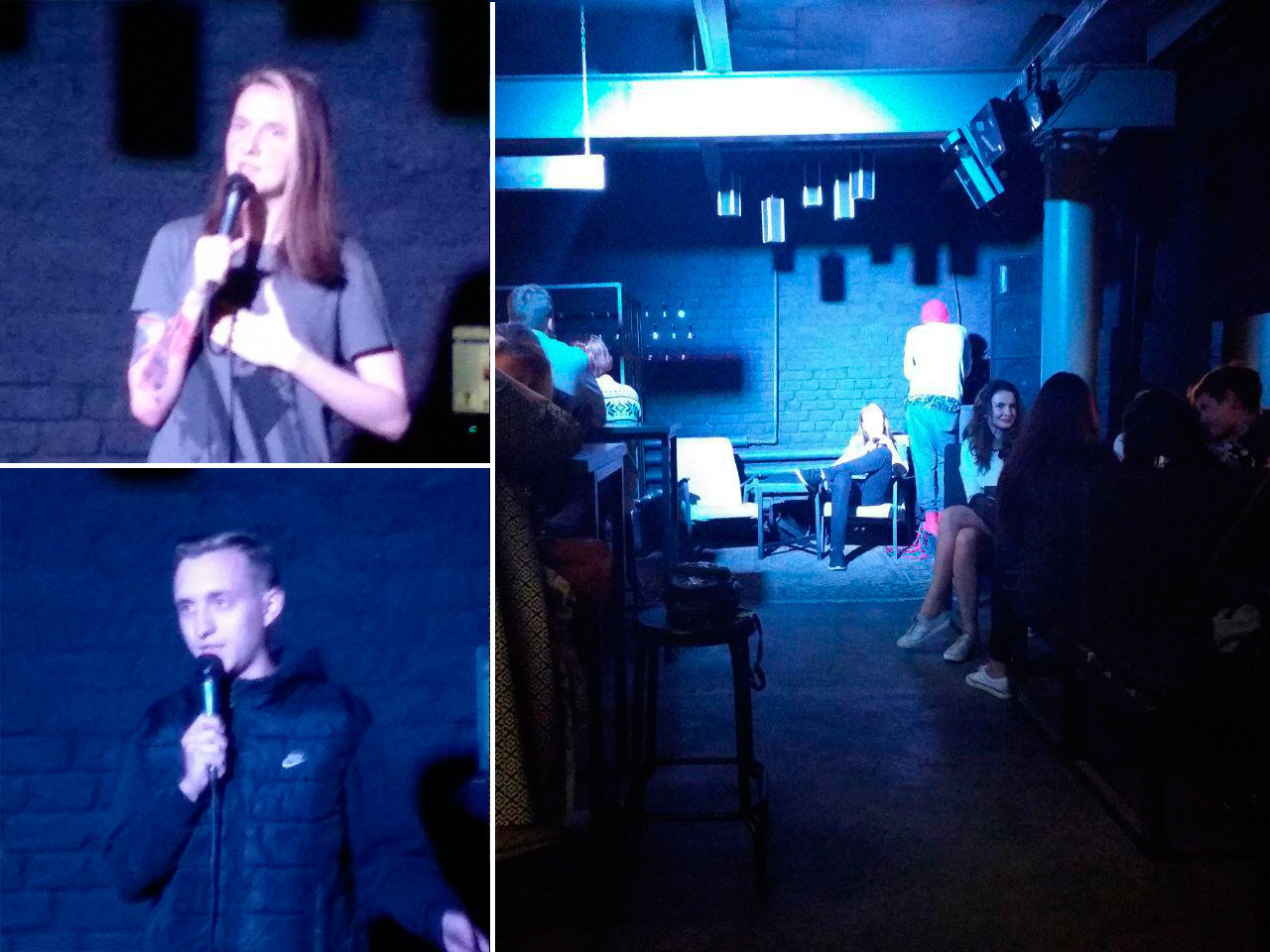 В фабрику я пришла посмотреть на местных комиков. Помимо выставок, техно-вечеринок и разных игровых мероприятий, здесь еще проходят «Открытые микрофоны». Не думала, что в Красноярске стендаперы так активны, и была приятно удивлена, количеству народа в баре. Публика была разного возраста.