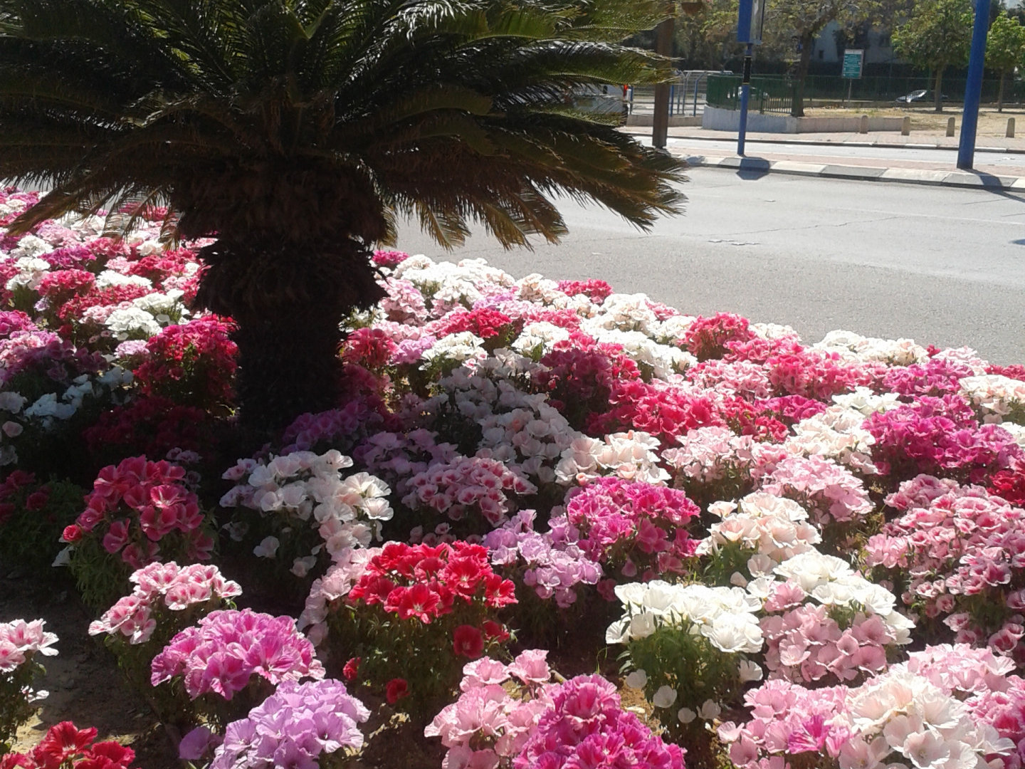 Яркое великолепие не только в парках, но и вдоль шоссе и электрички. Многоцветье меняется от нежного розового цвета до густого сиреневого, от веселенького оранжевого до буйного красного, от спокойного голубого до глубокого синего. И это учтите, что к каждому росточку тянется гидропроводная орошающая система. На самом деле это потрясающая колоссальная работа!