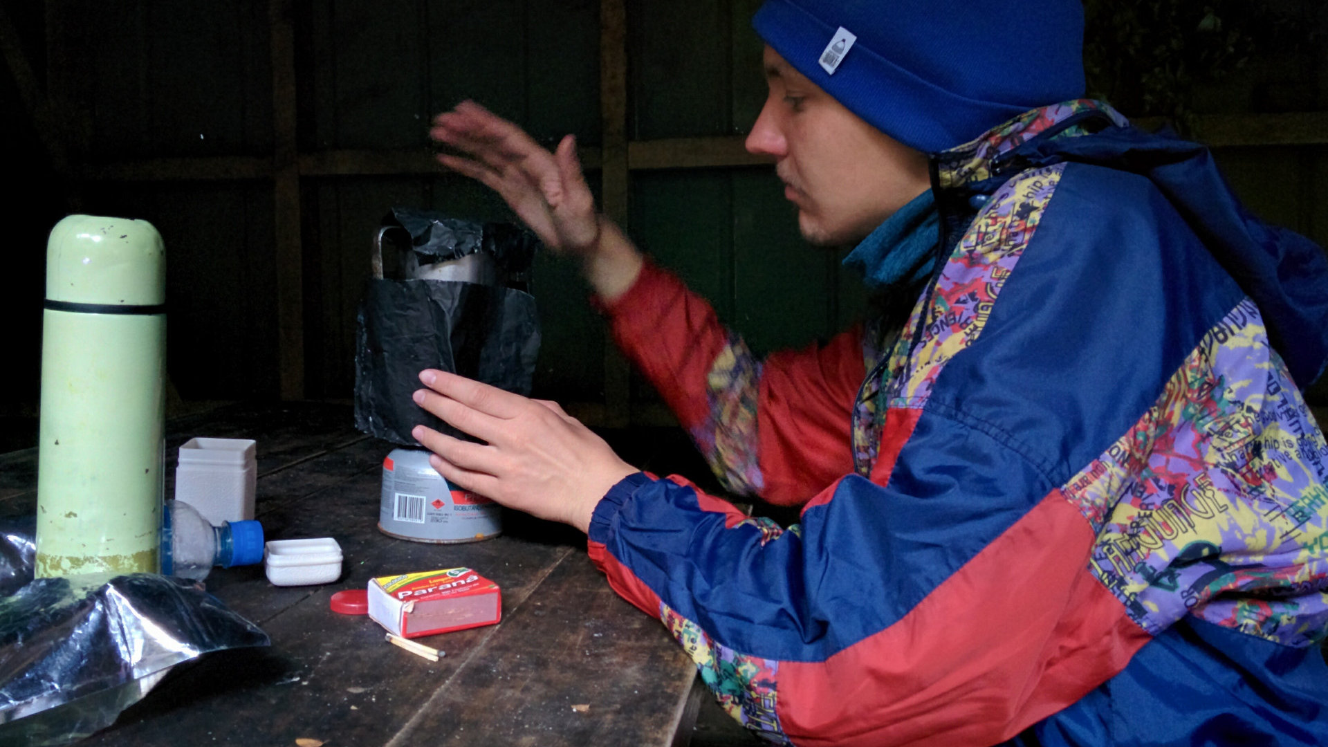В принципе можно с собой на день взять что-нибудь из дома, а на остальные дни затариться сухпаем (если вы тоже путешествуете без горелки — мы её не возим, потому что баллоны с газом нельзя провозить в ручной клади самолёта). Но, конечно, лучше где-нибудь найти горелку — нам её одолжил наш кауч из дома на колёсах. В холодную погоду будет очень круто поесть горячей пищи и попить горячего чая.