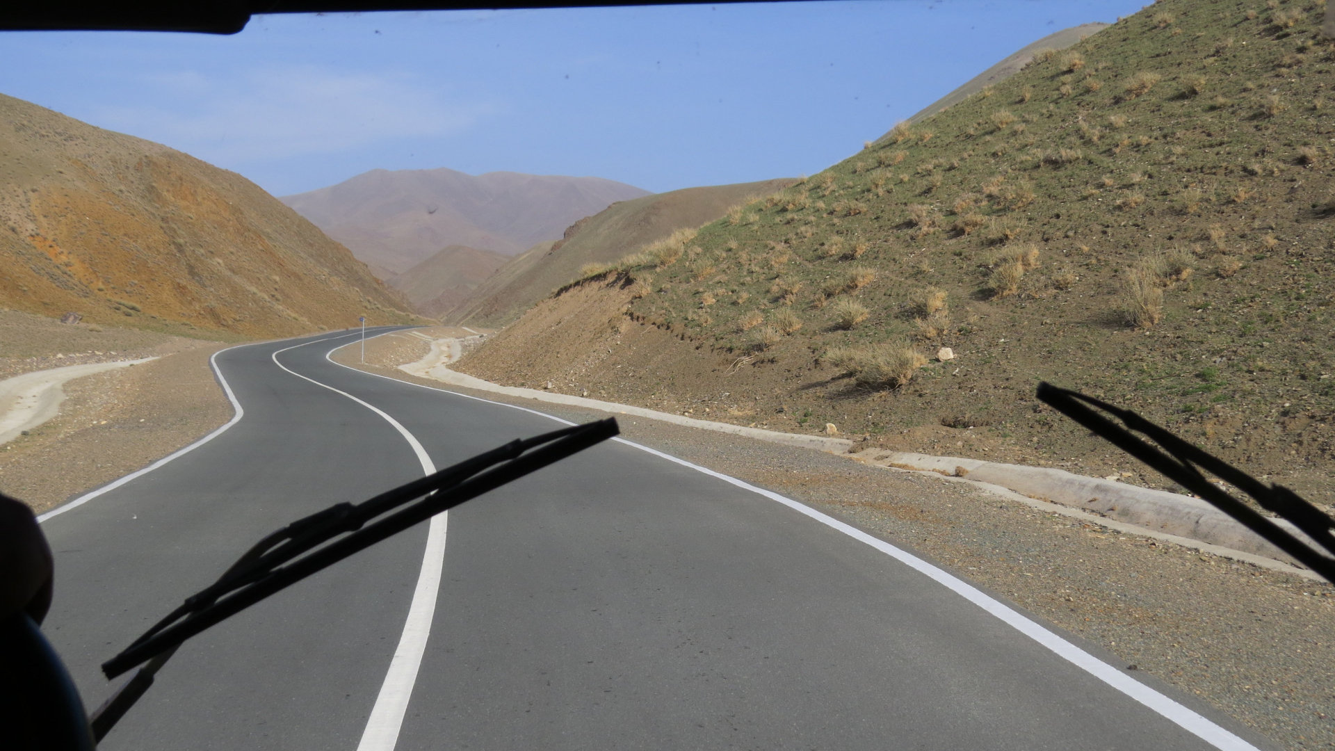 После, выехав на основную трассу уперлись в развилку: налево Манхан, направо — Алтай. Наше направление - юго- восток, естественно, сворачиваем к Алтаю. Устав после трясучки по камням и на грунтовых «стиральных досках», едем и радуемся! Новая, отличная дорога, еще не нанесенная на карты. GPS показывает прямую на поселок Алтай и говорит: «Правильным путем идете, товарищи!». Дорога тем временем, вошла в живописное ущелье.