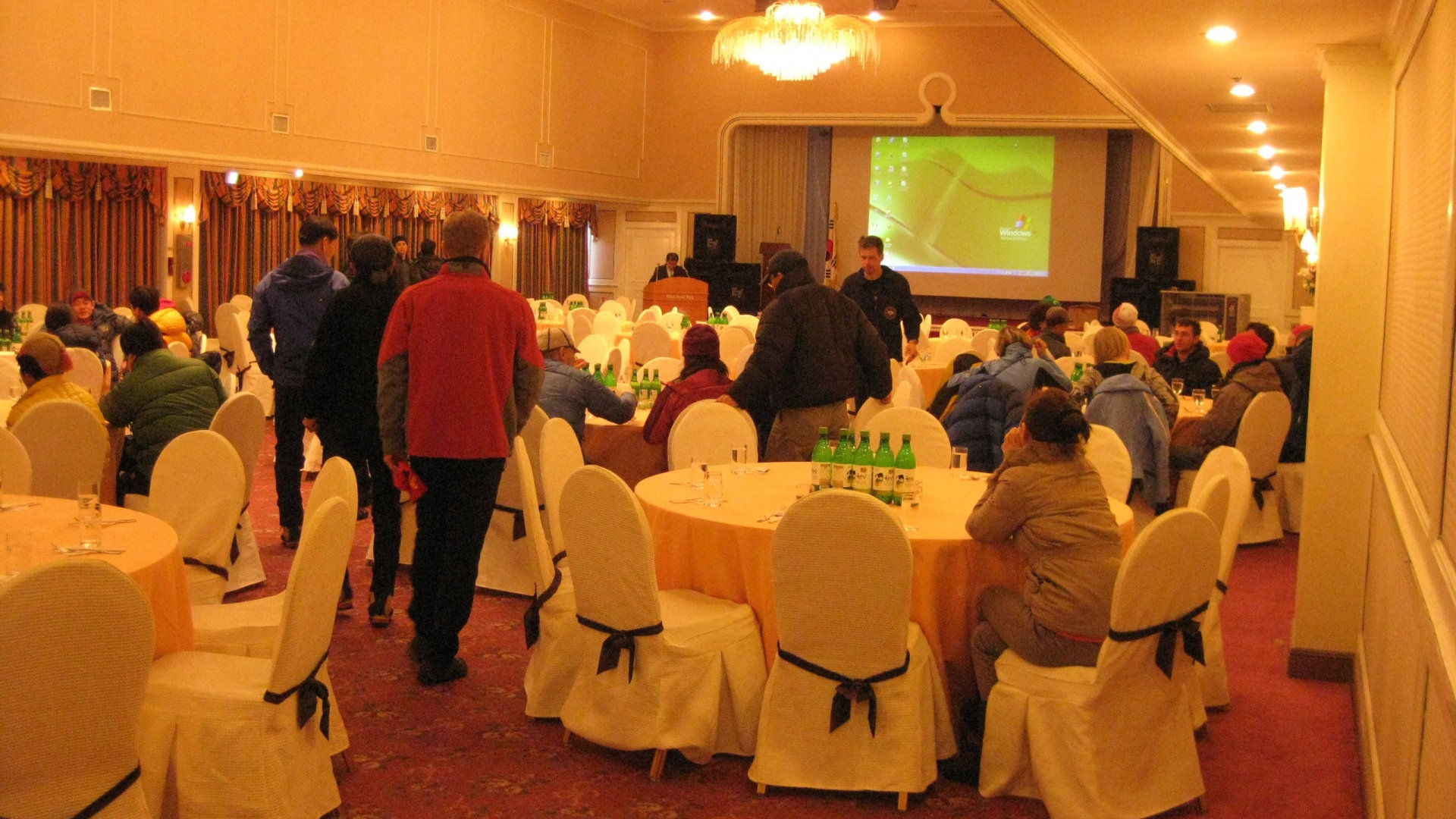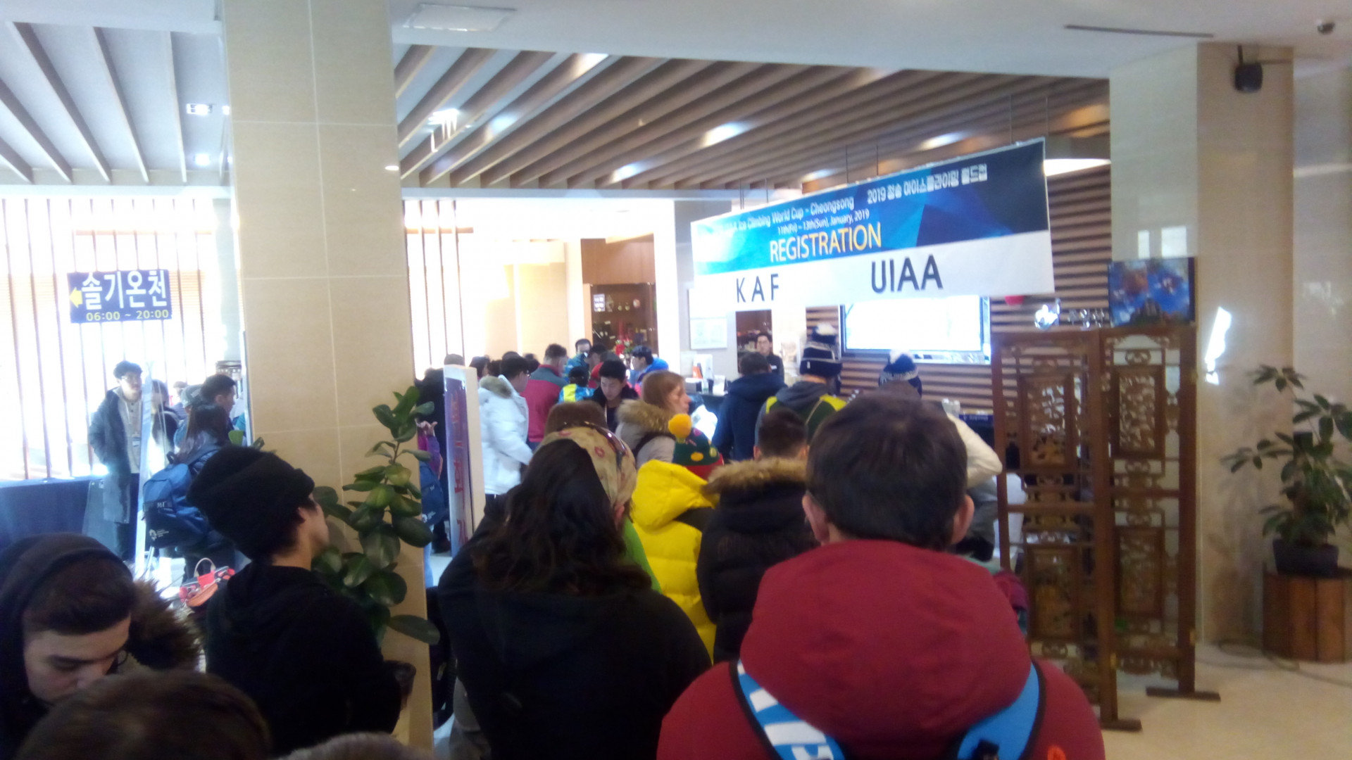 Наутро вас садят в автобусы и везут часа четыре в провинцию Чхонсонг. Здесь, в традиционной гостинице, ежегодно переживающей ледолазное нашествие, спортсмены выстраиваются в очередь на регистрацию. Покупают лицензию на сезон – 50 евро, платят стартовые взносы за этап – 50 евро, и за житье-бытье и прочее – еще 200 евро.