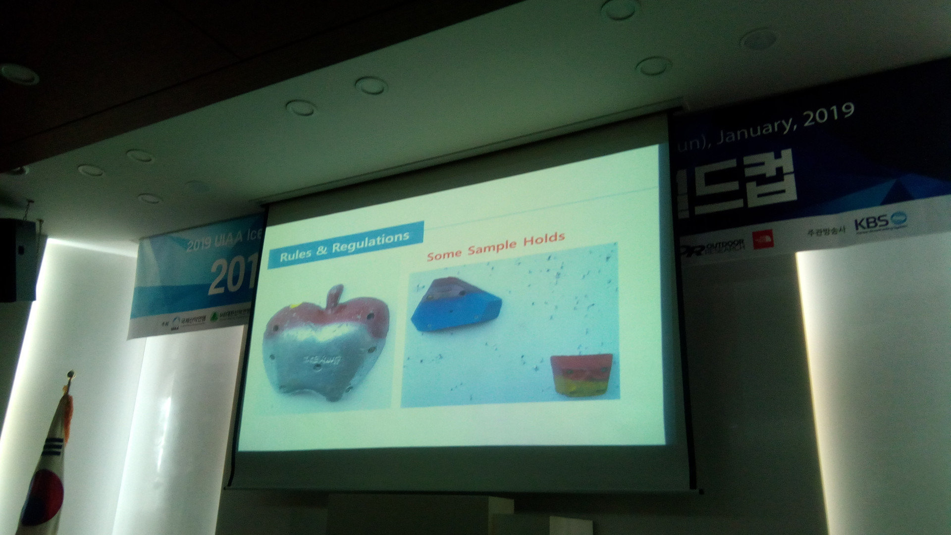 На экране зацеп в форме яблока. Ну вы поняли, если читали первую заметку. А вообще это демонстрируют спортсменам, что помеченные красным участки зацепа использовать нельзя.