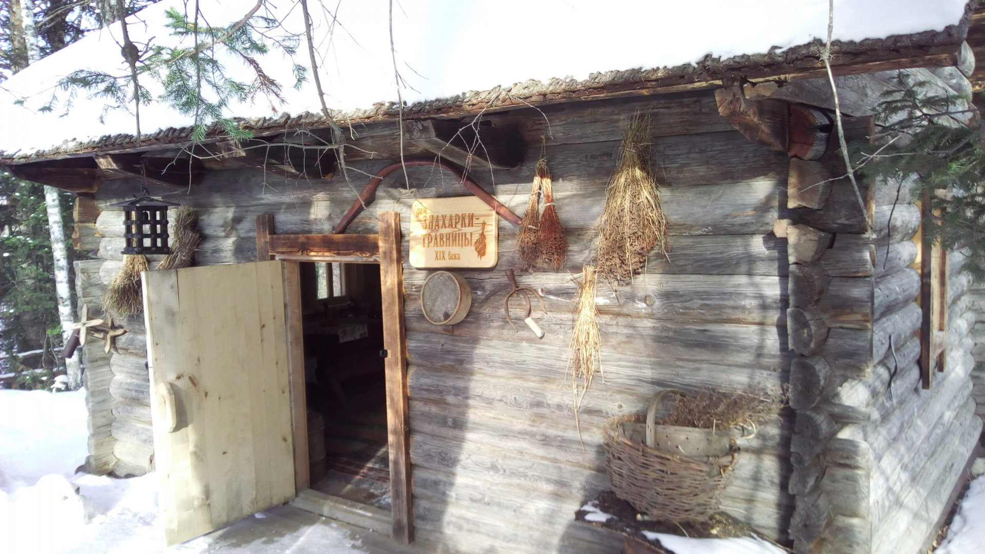 В домике пучками висят лекарственные травы, их аромат завершает таинственный образ. По домику расставлены снадобья, крыша покрыта корой.