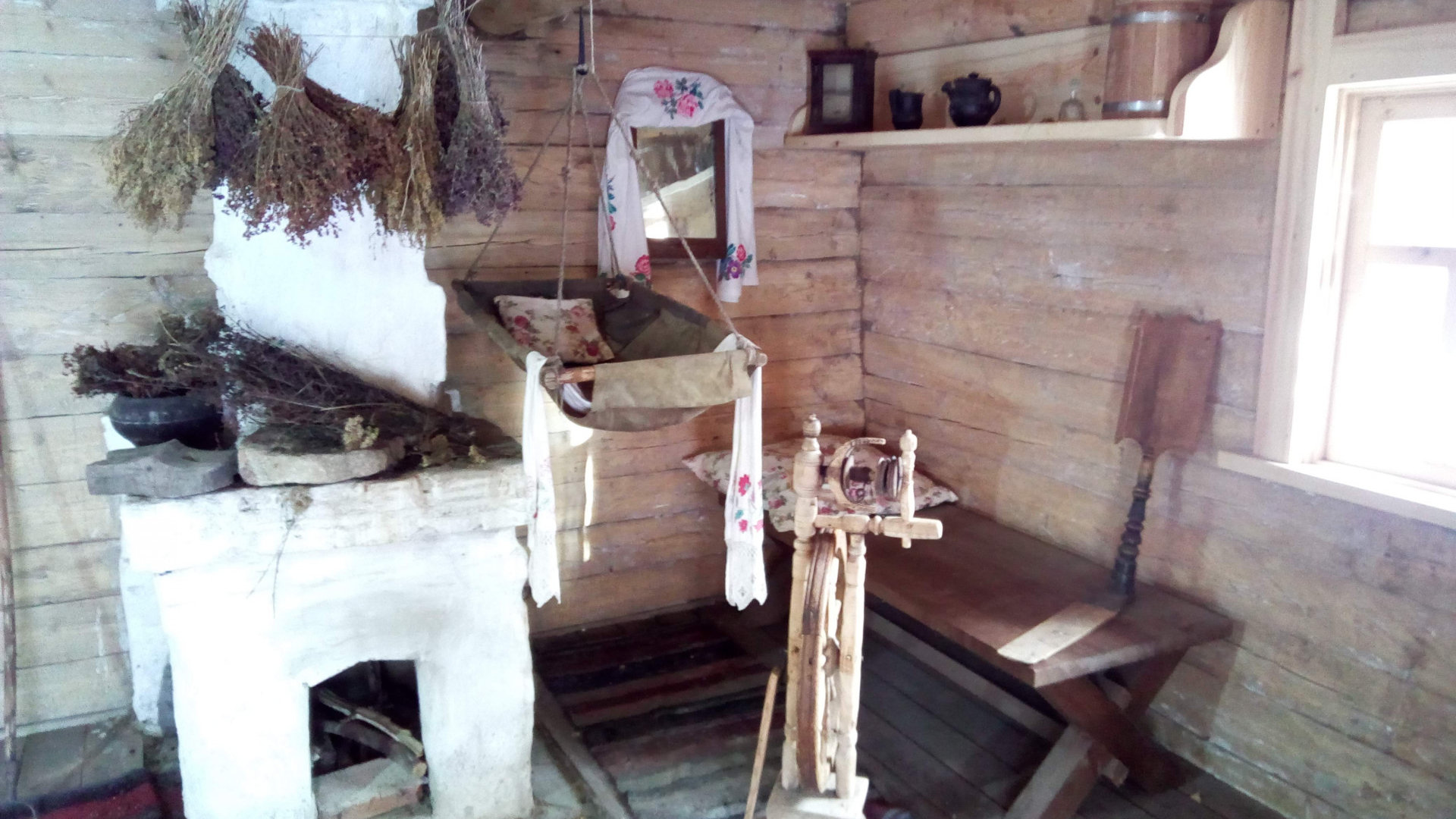 Сейчас этот дом (ему 200 лет) разобрали и перевезли в Белокуриху. На одном из бревнышек видно клеймо мастера – Митросъ. Обстановка дома — чарующая. Когда мы зашли, то услышали музыку, позже увидели источник – патифон. И он работал!