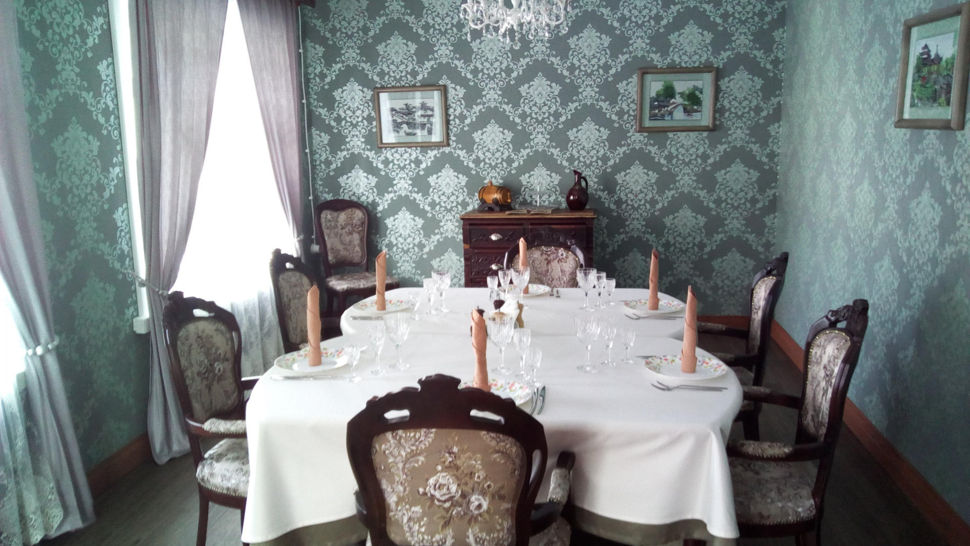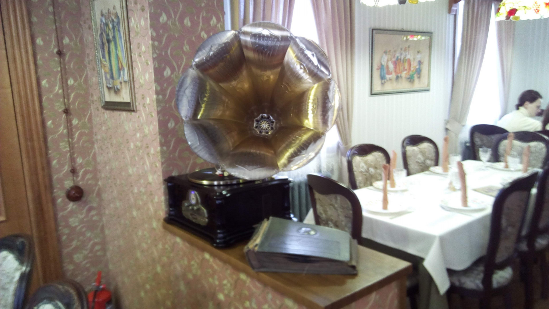 Мебель в ресторане – либо антиквариат, либо хорошая имитация. На первом этаже – зал ресторана.