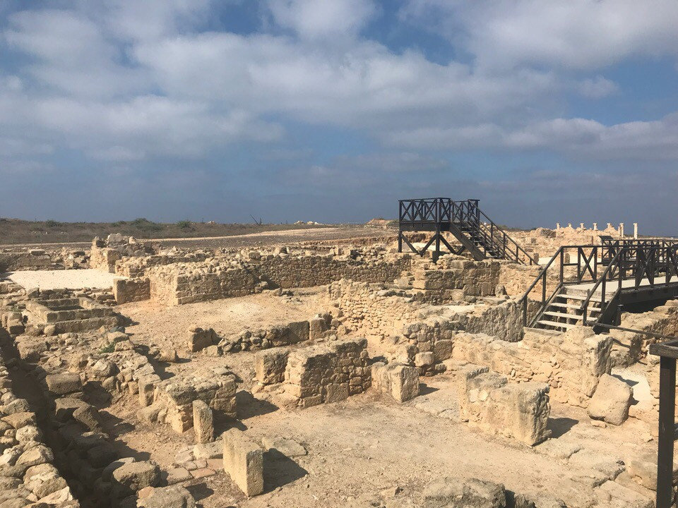 В какой-то момент мы поняли, что нам нужно узнать что-то из истории Кипра, почитали информацию в интернете и отправились на том же самом 315 автобусе на конечку( набережная Пафоса). Там, кстати, есть люди, чему мы были приятно удивлены. В общем там есть Археллогический парк, куда мы купили билеты и отправились с планшетом изучать развалины. Сразу посоветую надевать закрытую обувь, ибо там везде песок. Достаточно интересно, но днём тяжело, потому что очень высокие температуры, нужно запасаться водой, головными уборами и т.п