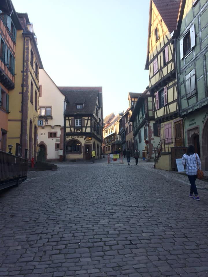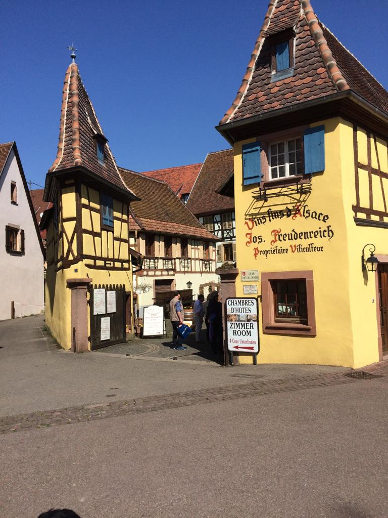 Направились мы в Кольмар. Конечно, перемещаться между такими доменами и деревеньками предпочтительнее автомобилем, но тогда водителю остается больше смаковать, нежели надегустироваться вдоволь. Во Франции при этом допускаются определенные промилле за рулем (0,5 или 0,8), равные бокалу вина, а так, конечно, большой штраф за вождение в подпитие. Лучше в этом случае нанимать водителя, потому так спокойнее посмотреть все красоты и оценить все винные букеты. А автобусов между городками и деревеньками там мало.