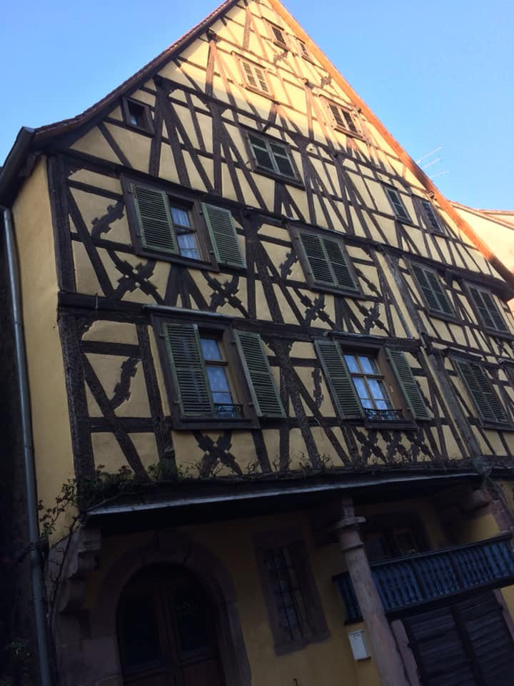 Дорога вин тянется рядом бесплатным шоссе, что не может не радовать)), но региональная платная автострада откроет вам все пейзажи и виноградники. Итак, мы добрались до Кольмара. Кольмар настолько прекрасен, что, кажется, можно бесконечно гулять по его улочкам. Все же фахверковый стиль оставляет непередаваемое ощущение средневековья. Такое впечатление, что в таких домах по-прежнему живут ремесленники-виноделы в специфических одеждах без благ цивилизации, а мостовая из булыжников и рассеянный фонарный свет усиливают этот впечатление. Использую банальное выражение «памятник под открытым небом», но это именно так. Аутентичность полная! Летом дома на узких проулках украшены цветами, и тогда все обретает яркий сказочный шик. Дома изобилуют цветниками, хозяева буквально соревнуются в красоте убранства, и это самое время для проведения ярмарки вин.