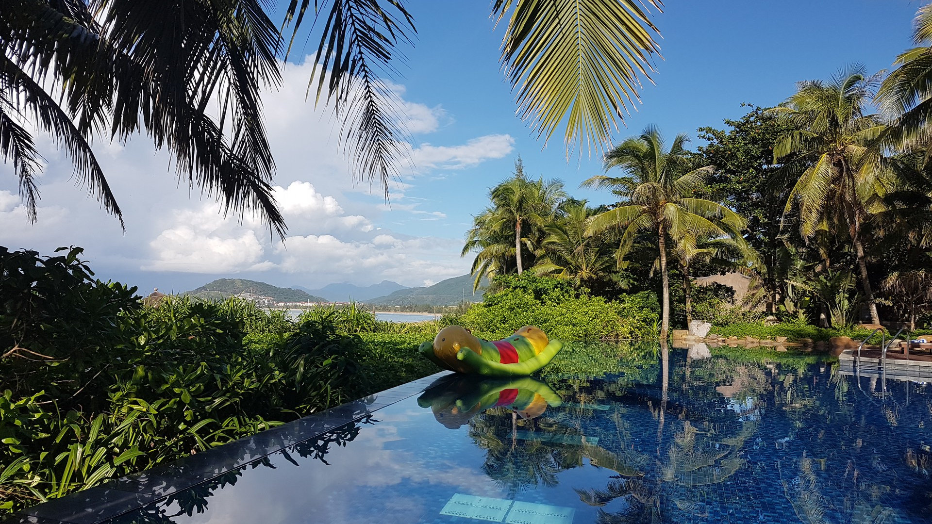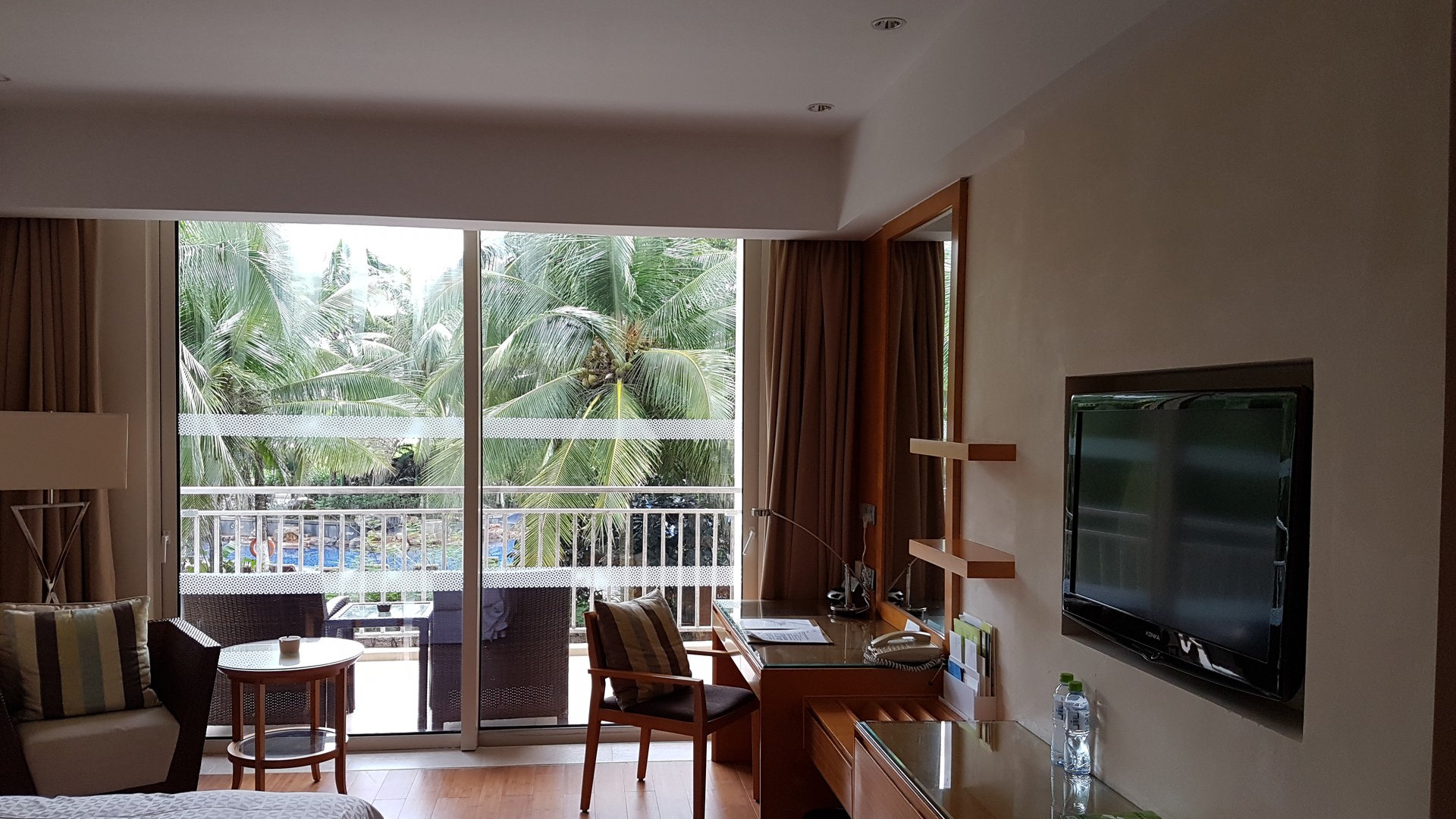 Отель мы выбрали по рекомендации турагента «Дюла Тур». Мы хотели отдохнуть в тишине и красоте, и решили прислушаться к её предложению. Наш отель For Points by Sheraton находится в полутора часах езды на автобусе от города Санья. По фото нам всё очень понравилось и устроила цена. Сезон дождей нас не остановил (с 24 сентября по 03октября 2017 года) и мы решили лететь в тропические джунгли. Когда улетали, в Красноярске несколько дней лил дождь. И прилетев на Хайнань, увидели ту же картину. Всю дорогу до отеля сыпал мелкий тропический дождь. Но любуясь красотой природы из окна автобуса, настроение не портилось. Прибыли в отель и получили ключи от классного номера 286 на втором этаже с шикарным видом!