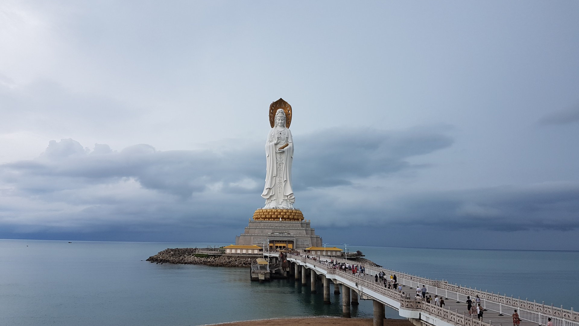 Особенно осталась в памяти статуя богини Гуньянинь. Величественная статуя богини расположена на искусственно созданном острове, куда ведёт красиво оформленная дорога. Со всего мира приезжают туристы взглянуть на трёхликое божество. Один лик Гуньянинь смотрит на нас, держа в руках книгу, второй лик с чётками, и третий с цветком лотоса. Высота статуи 108 м. Вес статуи 2600 т. Количество бусин в чётках 108 (по фэн-шуй это сакральное число). На открытии статуи в 2005 году присутствовали 108 монахов. Статуя богини является олицетворением мира, мудрости и милосердия. Недаром её имя означает «смотрящая на страдания мира».