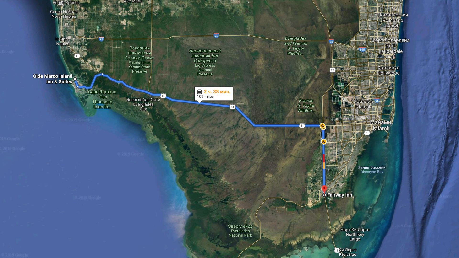 На следующий день мы отправились в КИ-Вест, о чем будет отдельный рассказ, а еще через день мы поехали через Эверглейдс на западное побережье Флориды, к Мексиканскому заливу, по обычному шоссе, не въезжая в Национальный парк, а просто по пути в следующее место остановки — на Остров Марко.