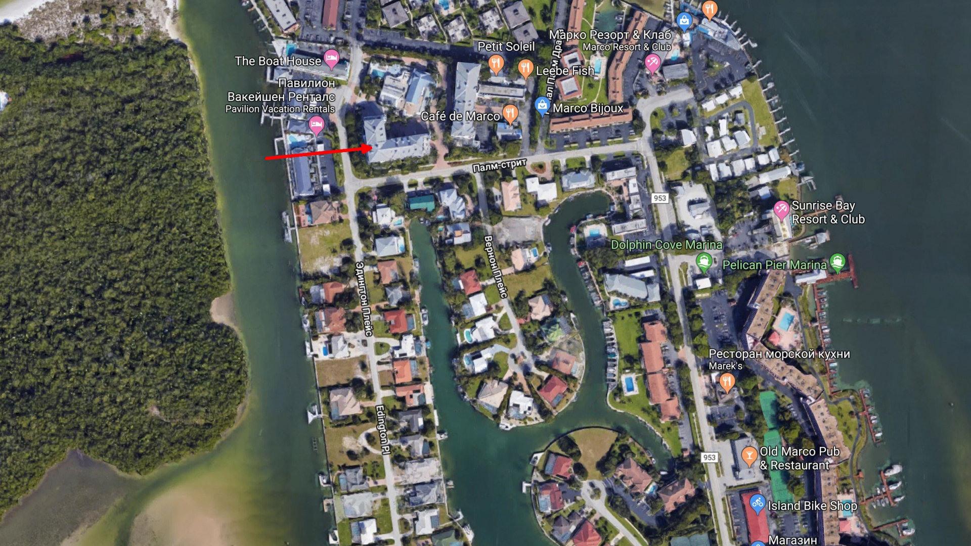 Изрезанный каналами остров, на котором расположены сотни вилл, каждая с собственным причалом для катера или яхты. Белый пляж и улица отелей прилагаются.