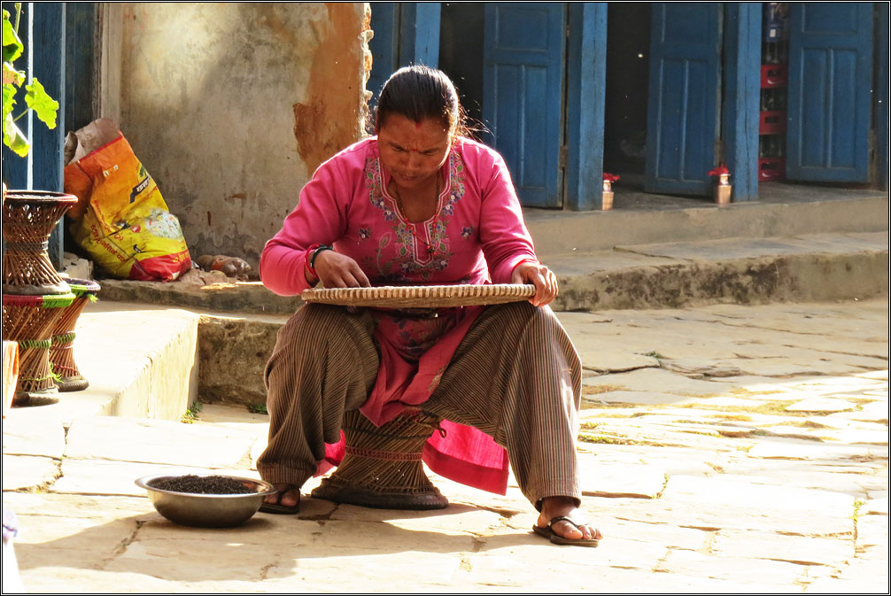 Дети бегут в школу, женщины перебирают зерна, мужчины собираются в кучки на площади и что-то бурно обсуждают. Даже громко щелкающие большими фотоаппаратами европейцы не вызывают никакого повышенного интереса. Все вокруг заняты своими делами, обычной мирной неторопливой жизнью. С другой стороны — и правда, что им эти, суетящиеся вокруг с рюкзаками — сегодня приехали, завтра уедут, никакого смысла...