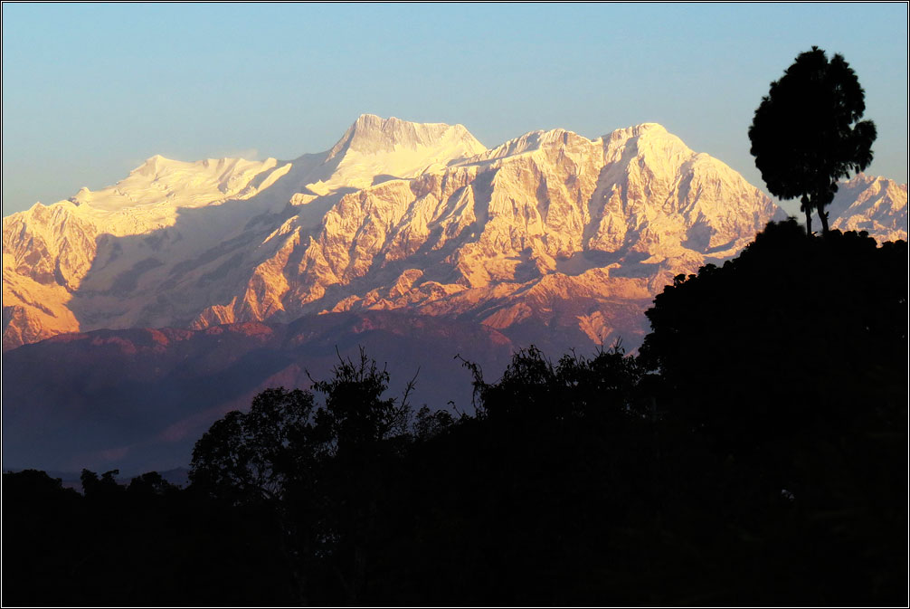 Честно признаюсь, город Бандипур сумел поразить меня как минимум трижды. Но самым ярким, конечно, было сегодняшнее утро.Проснулся я в семь утра, и первым делом заметил в окне розовеющие на фоне синего неба вершины. Вскочил, даже не умывшись, схватил камеру и помчался на вьюпойнт. А там...